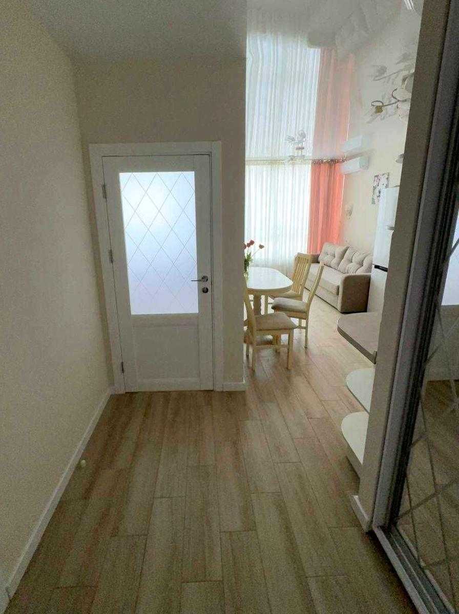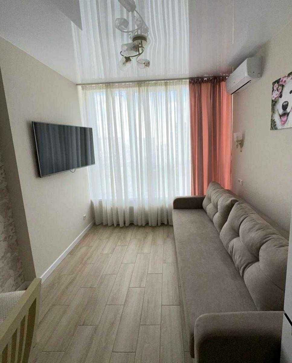 Стильна "євродвушка" в ЖК «Варшавський», на 11 поверсі 25-поверхового будинку. Загальна площа – 40 кв.м, спальня – 15 кв.м, кухня з вітальнею – 17 кв.м. Вікна виходять на південь. Дизайнерський ремонт, сучасні меблі, двоспальне ліжко, плазмовий телевізор (50 дюймів, Smart TV), пральна машина, холодильник, духова шафа. У комплексі закритий двір, спортивні та дитячі майданчики. Розвинена інфраструктура, поряд ТРЦ «Ретровіль», магазини, кафе, ресторани.
