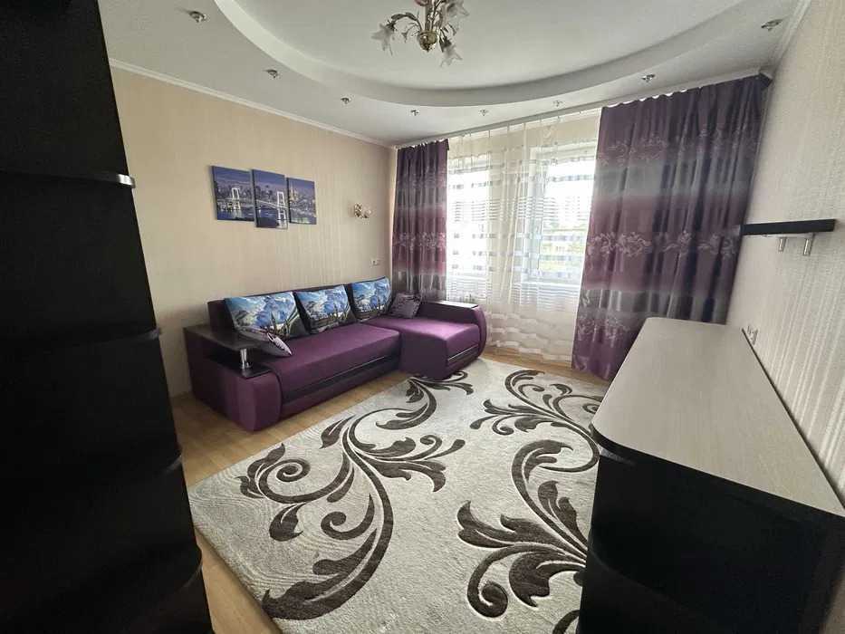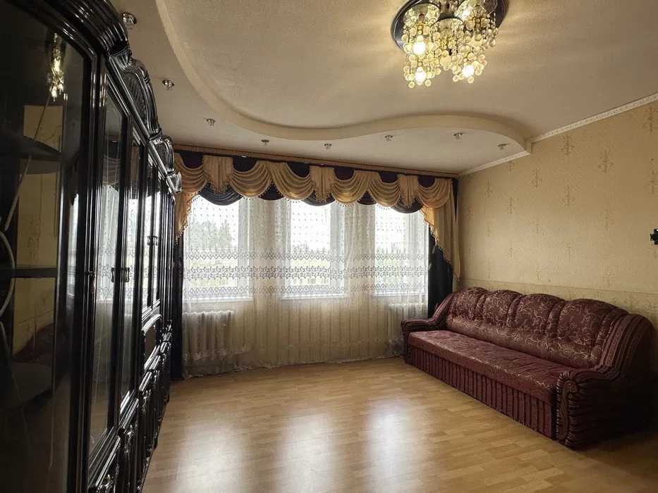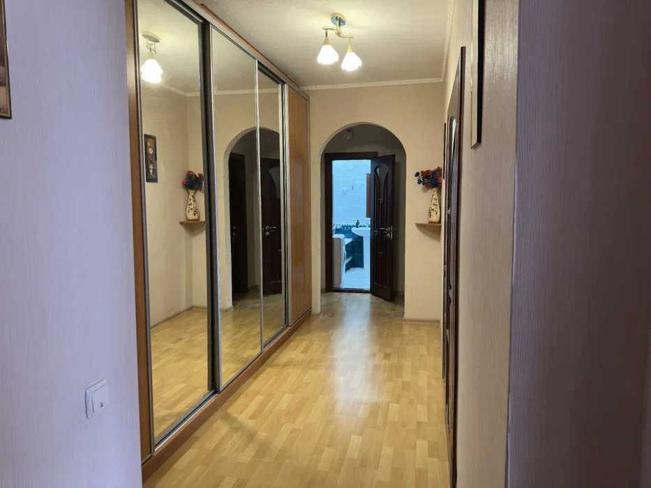 Трикімнатна квартира площею 103 м² розташована на 5 поверсі 18-поверхового будинку на проспекті Леся Курбаса, 5В у Святошинському районі Києва. Квартира має двостороннє планування із просторими кімнатами: велика вітальня, кухня, затишна спальня з балконом та дитяча кімната. У квартирі два санвузли та світла обідня зона. Будинок обладнаний бомбосховищем. Район характеризується розвиненою інфраструктурою: парки, школи, лікарні, магазини та кінотеатр. Добра транспортна доступність забезпечує зручне сполучення з метро.