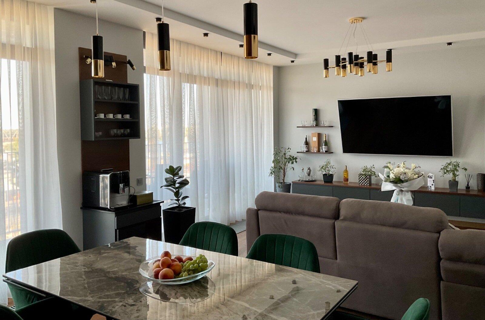Простора квартира в ЖК Rybalsky, розташованому на Набережно-Рибальській дорозі, на 6-му поверсі з великою терасою з видом на Дніпро. В квартирі розумна планування: кухня-студія, що поєднана з гостинною, гардеробна кімната та кабінет. Панорамні вікна забезпечують достатньо природного світла, а два балкони надають можливості для відпочинку на свіжому повітрі. Сигналізація та сейф для безпеки. ЖК забезпечує цілодобову охорону, чисті під’їзди та зручну інфраструктуру.