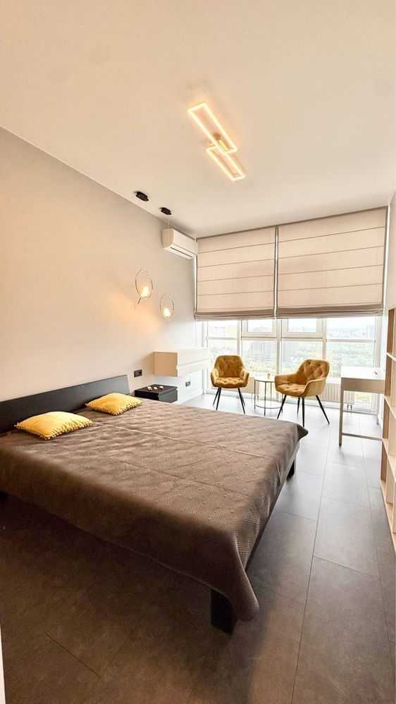 Пропонується двокімнатна квартира в ЖК «Каховська», неподалік метро Лівобережна. Дизайнерський ремонт від Ірини Зюзи. Площа квартири 67 м² з висотою стель 3 метри. Планування включає простору кухню 17 м², дві окремі кімнати по 14 м², спальню з гардеробною 3 м² та великий шафа-купе в коридорі. У ванній кімнаті розміщені пральна та сушильна машини, бойлер та тепла підлога. Встановлені кондиціонери в кожній кімнаті та відеодомофон. На 26-му поверсі 26-поверхового будинку. Інфраструктура включає парки, магазини, школи та ТРЦ.