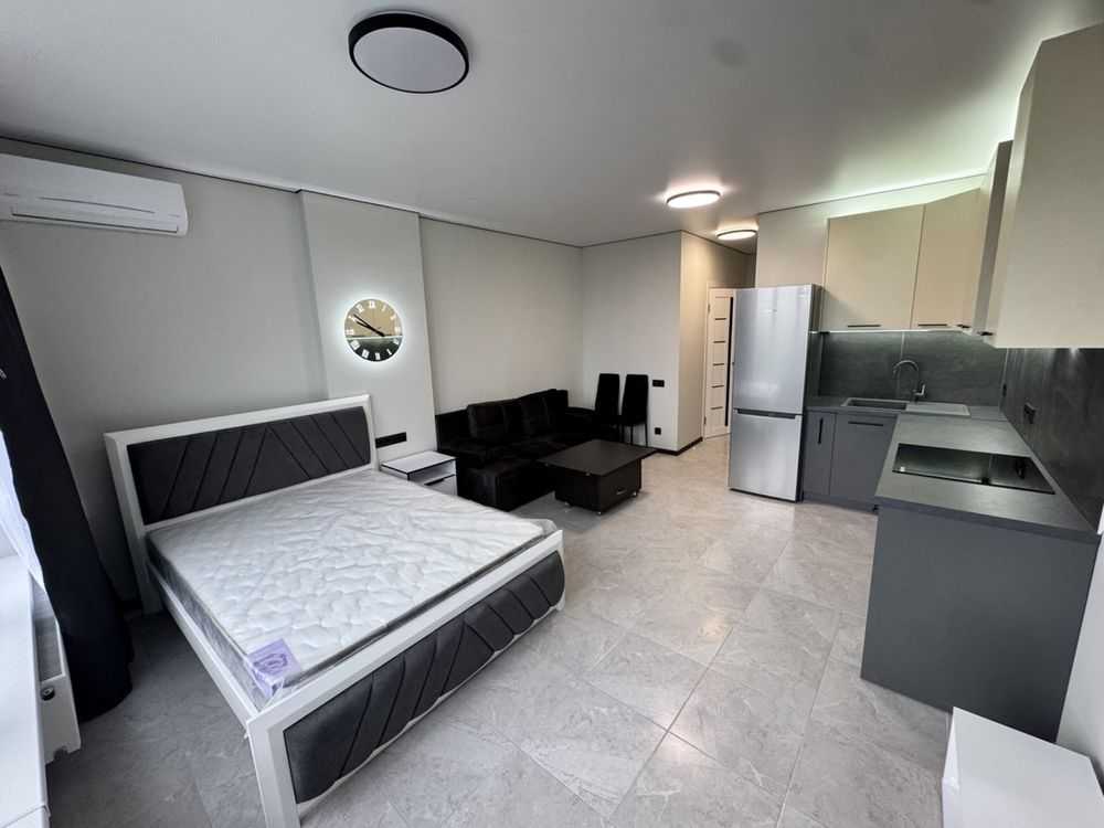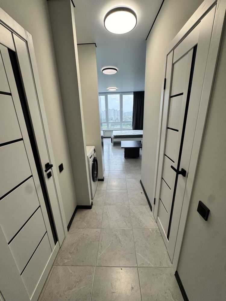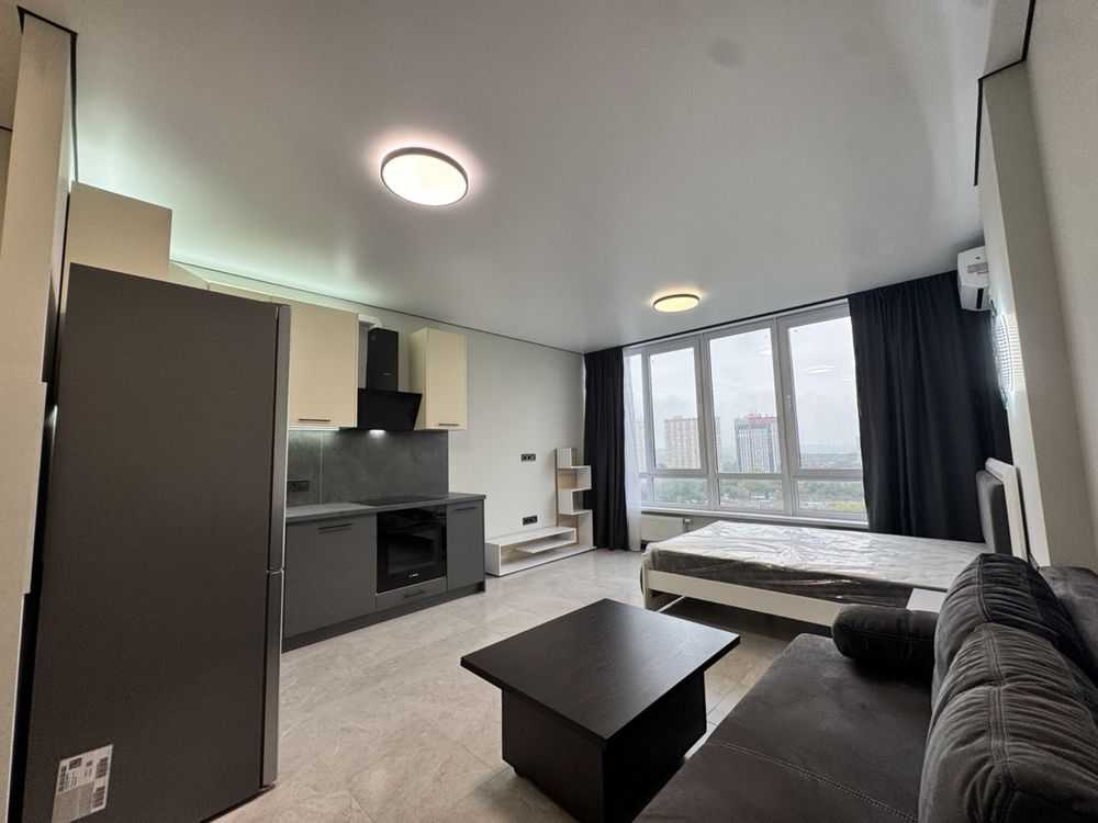 Пропонується квартира-студія площею 30 м² на вулиці Ракетній, 24. Це сучасна, світла квартира з панорамними вікнами та видом на місто. У квартирі розташовані керамогранит, велика гардеробна та якісна сантехніка. Вона обладнана технікою Bosch, включаючи варочу поверхню, холодильник, посудомийну і пральну машини. Серед зручностей - ортопедичний матрац та розкладний диван. Будинок новий, заселений на 80%. Район зелений та спокійний, поруч Голосіївський парк.