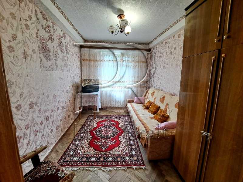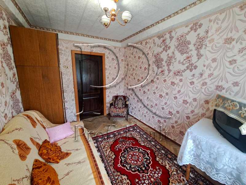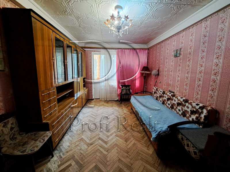 Представлена 3-х кімнатна квартира в Голосіївському районі Києва, розташована на 5-му поверсі цегляного будинку. Загальна площа складає 49 м², з начальним житловим станом. Квартира має дерев'яні вікна та старий балкон. Одна кімната прохідна. У безпосередній близькості є гімназія, басейн та два дитячі садки. Голосіївський парк, ВДНГ і станція метро розташовані у пішій доступності.