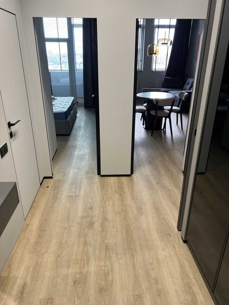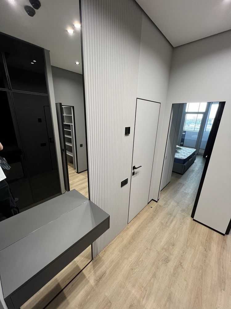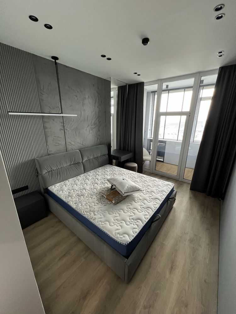 Сучасна однокімнатна квартира в новому житловому комплексі "Manhattan" в Києві. Квартира з дизайнерським ремонтом та панорамними вікнами, що відкривають неймовірний краєвид на місто. Планування включає кухню-вітальню, окрему спальню, гардеробну кімнату, просторий санвузол та балкон. Комплектація: повністю мебльована, з вбудованими побутовими приладами, включаючи два Smart TV, кондиціонери, пральну/сушильну машину та посудомийну машину. Забезпечена автономність під час блекаутів.