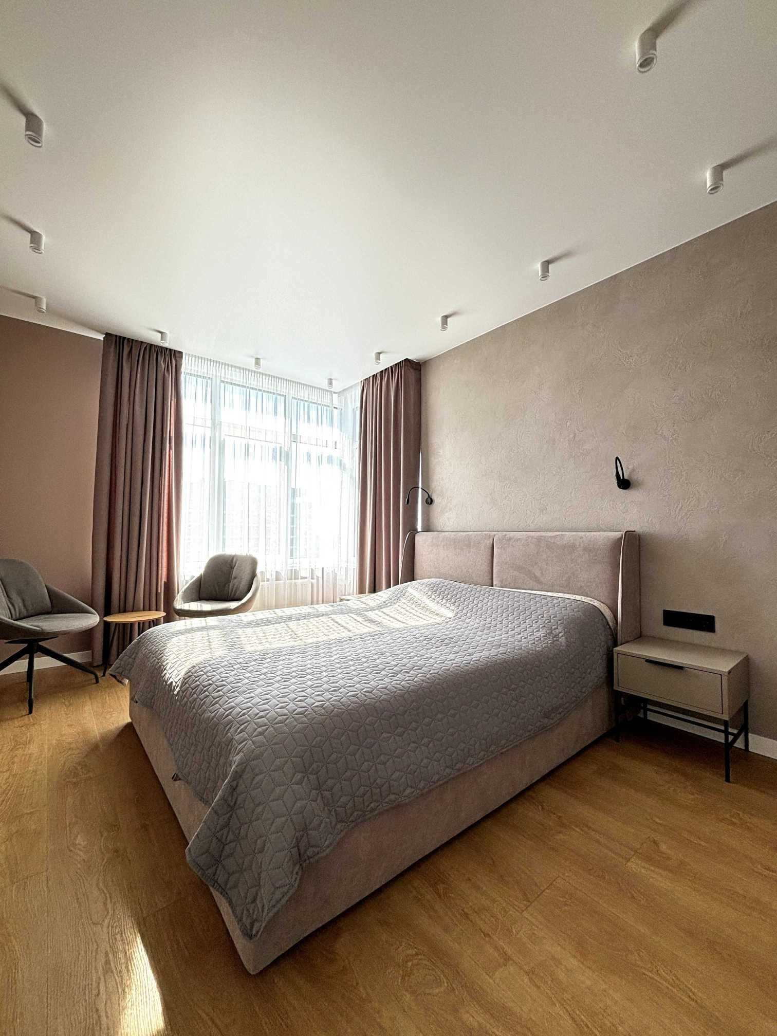 Пропонується дизайнерська 2-кімнатна квартира площею 74 м² у сучасному житловому комплексі «Галактика», розташованому поряд з метро Лівобережна. Квартира на 23-му поверсі з панорамними видами на місто. Простора кухня-студія та спальня з гардеробною, два санвузли. Дизайнерський ремонт, нові меблі та сучасна техніка, включаючи фільтри для води та кондиціонери. Комплекс має охорону, відеоспостереження, парковку, закритий тенісний корт та інфраструктуру для комфортного життя.