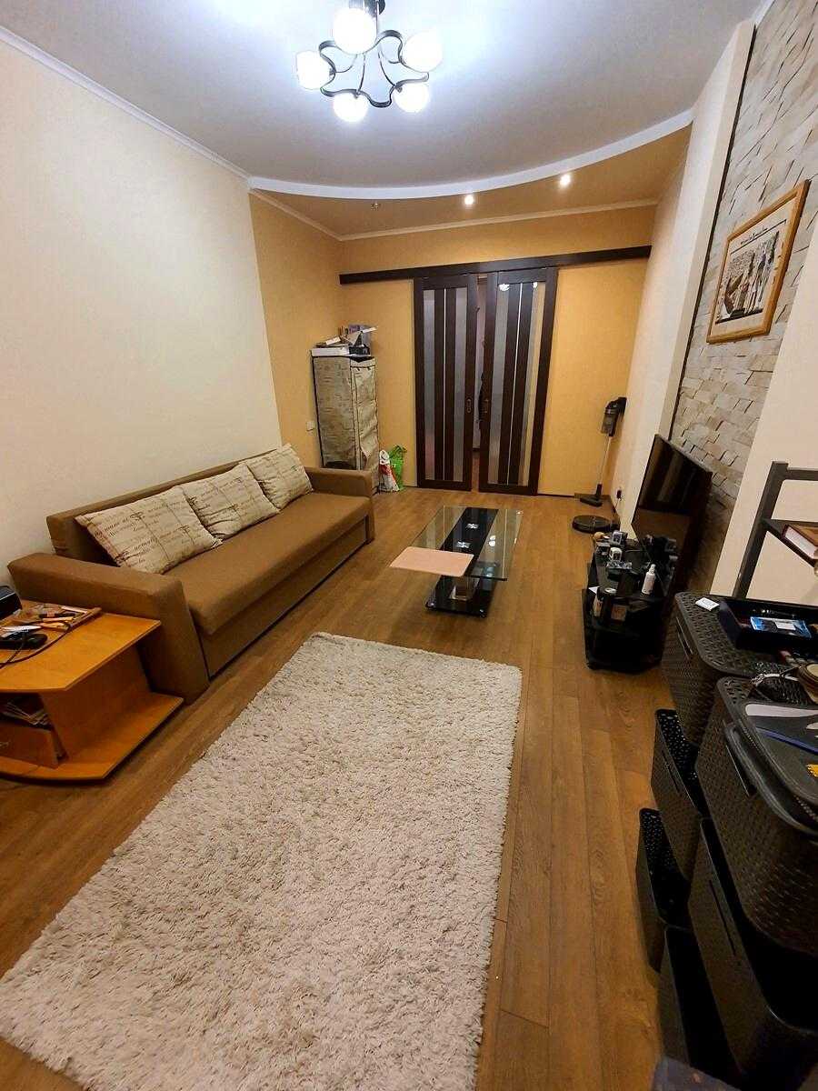 Пропонується квартира на проспекті Повітряних Сил, 14/17 у Солом'янському районі Києва. Загальна площа - 32 м², роздільне планування, 2 кімнати на 2-му поверсі 5-поверхового сталінського будинку. Сучасний ремонт, склопакети, на підлозі плитка та ламінат. Оснащена газовою плитою, колонкою, холодильником, пральною машиною та кондиціонером. Зручна інфраструктура: магазини, транспортні зупинки. До станції метро Вокзальна та залізничного вокзалу 15 хвилин пішки. Можливе проживання з тваринами.