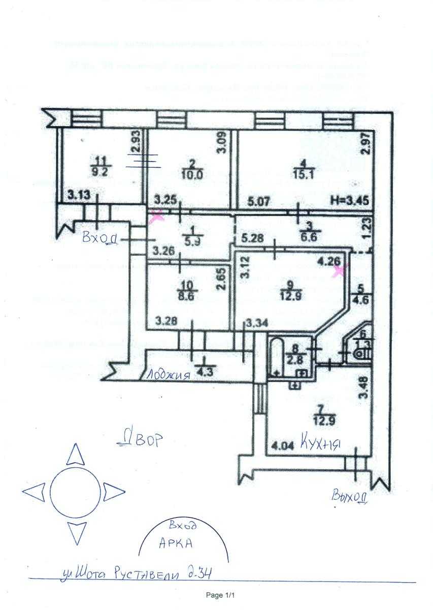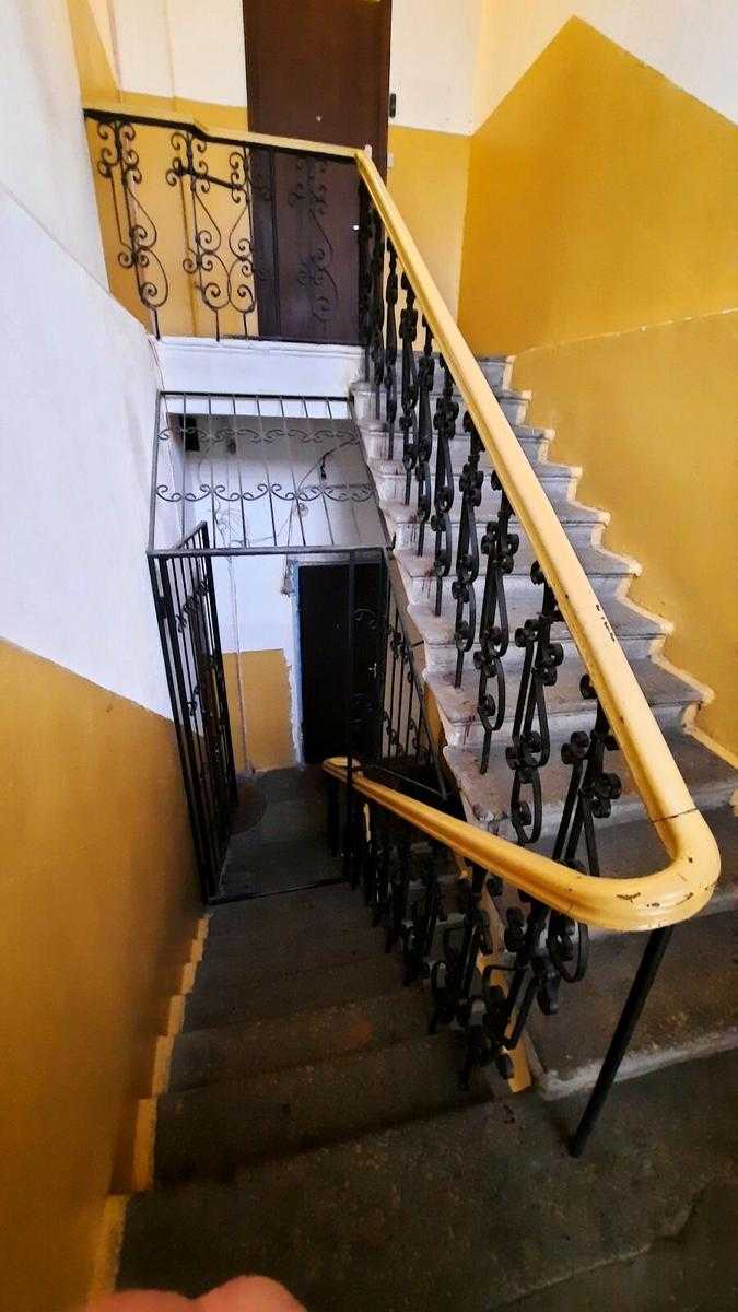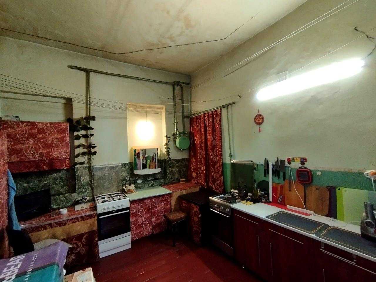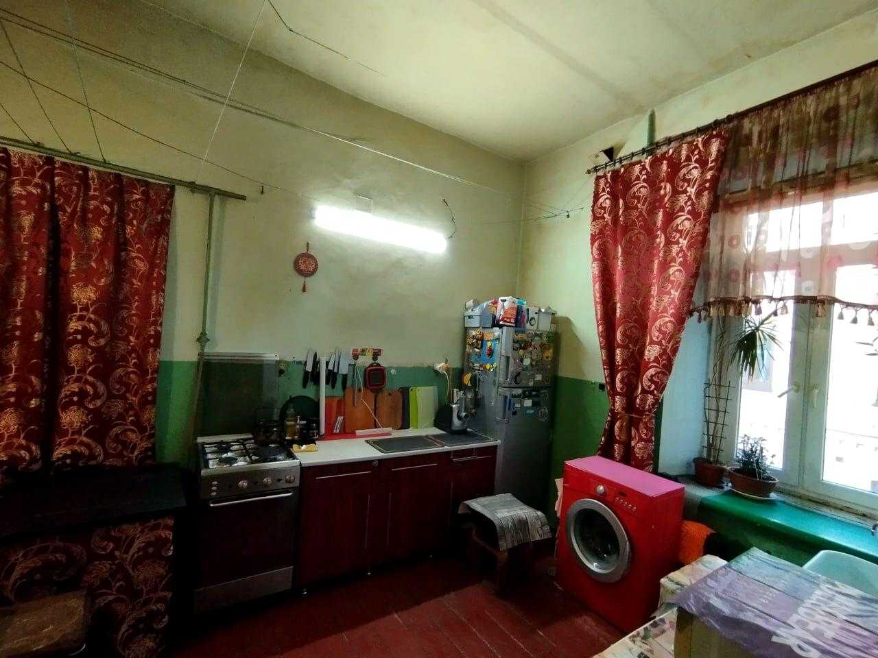 Квартира розташована на вул. Шота Руставелі, 34, у Печерському районі Києва, в пішій доступності від станцій метро "Палац Спорту" та "Л. Толстого". Це пятикімнатна квартира площею 96 м² з роздільним плануванням, житлова площа складає 56 м², кухня має 13 м² з запасним виходом. Квартира знаходиться на 4-му поверсі п'ятиповерхового будинку без ліфта, характеризується високими стелями (3.6 м) та дерев'яними перекриттями. Двостороння квартира має вікна, що виходять у затишний двір. Поряд багато кафе, ресторанів та торгових закладів.