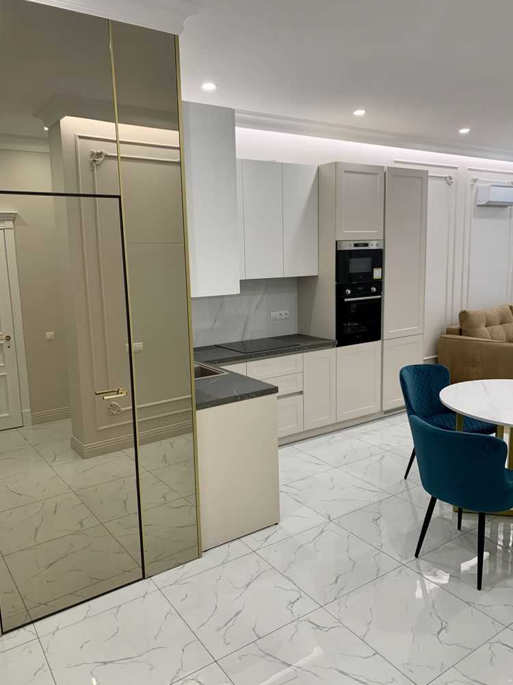 Пропонується квартира в ЖК "Аристократ", розташованому на вул. Коновальця Євгена, Печерськ. Квартира площею 57 м² має функціональне планування: кухня-студія, спальня, гардероб, ванна кімната та коридор. Виконано дизайнерський ремонт із преміум матеріалів. Оснащена телевізором, кондиціонерами, електричною плитою, духова шафа та бойлером. ЖК представляє бізнес-клас з монолітно-каркасною технологією будівництва та утепленням з мінеральної вати. Двір забезпечений цілодобовою охороною та відеоспостереженням, є підземний паркінг і дитячий майданчик.