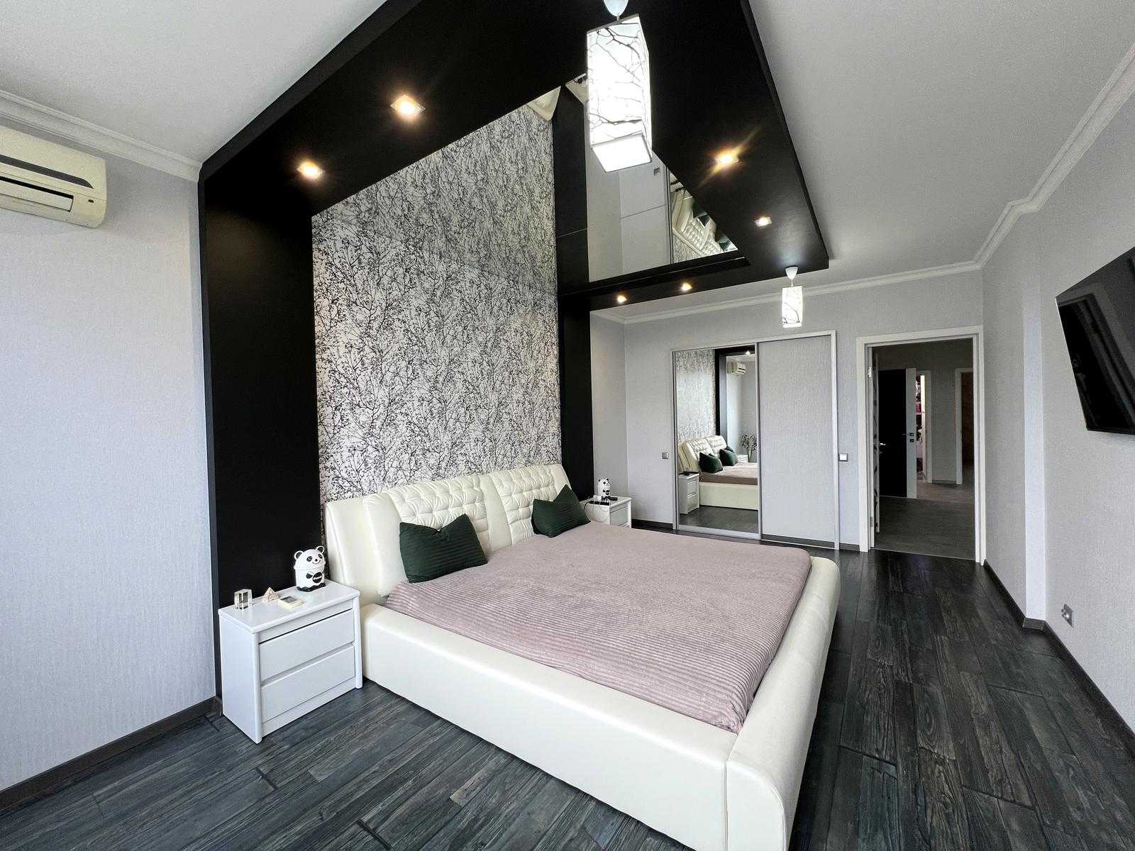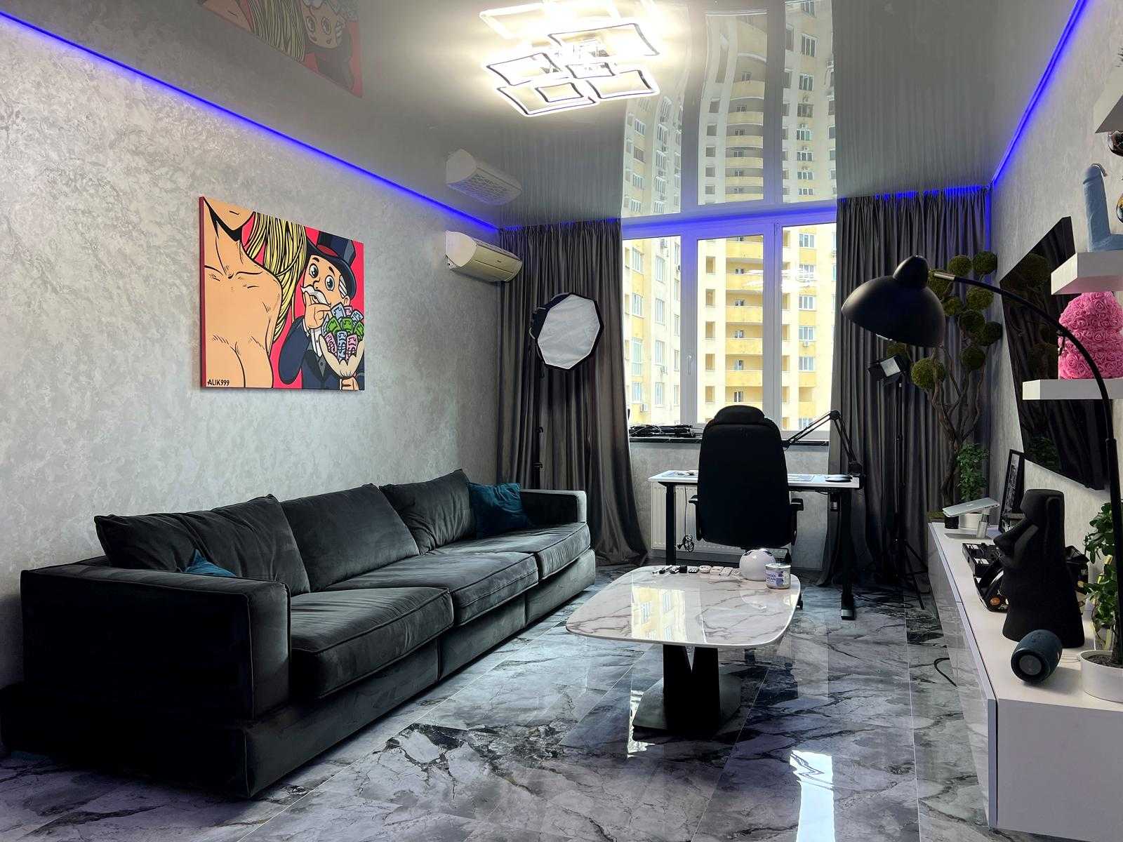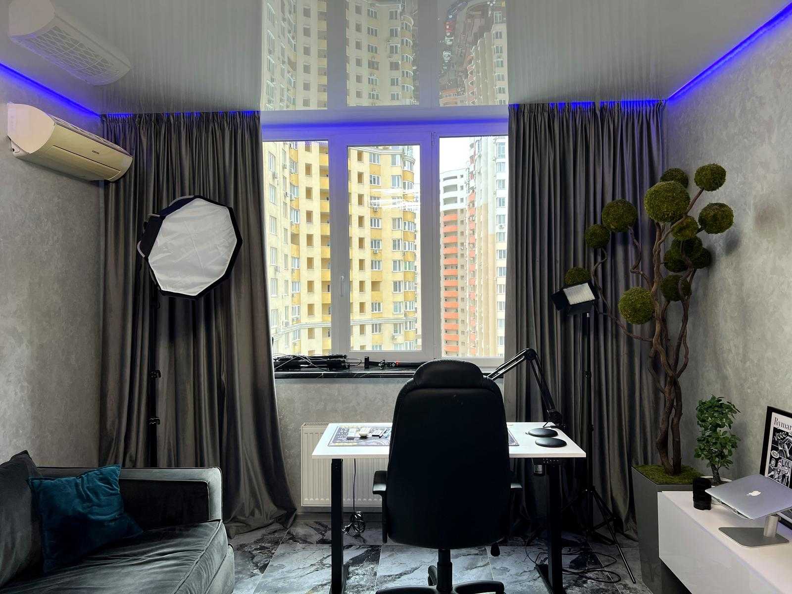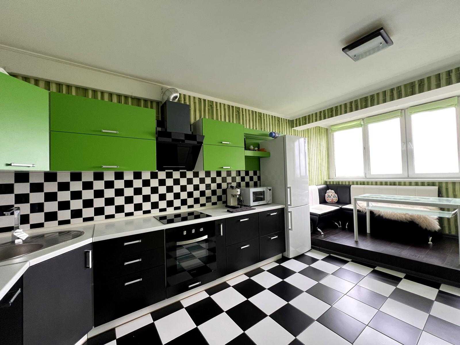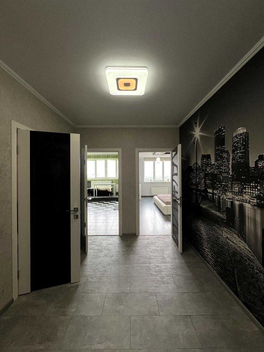 Пропонується квартира у житловому комплексі "4 Сезони" на вул. Михайла Максимовича у Києві, Голосіївський район. Площа квартири становить 115 м², вона має три кімнати, сучасний ремонт та двосторонню орієнтацію. Вікна забезпечують панорамний вид на місто. Квартира повністю мебльована та укомплектована дорогим побутовим приладдям. Включає в себе велику кухню, два санвузли, гардеробну та балкон. Відмінна транспортна доступність, поруч метро Васильківська.
