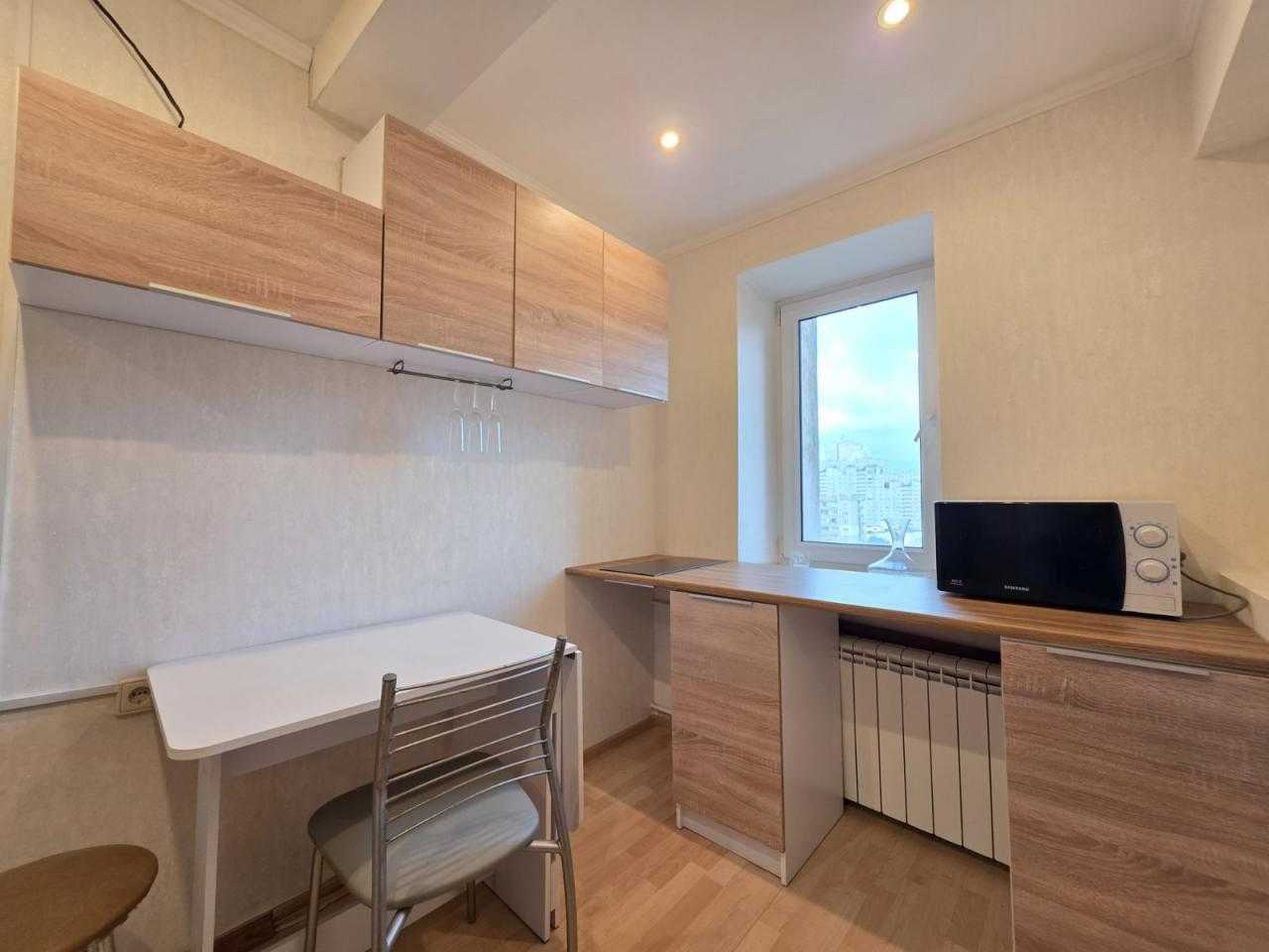 Квартира на вул. Срібнокільська, 20, у Дарницькому районі, розташована на 10-му поверсі 16-поверхового будинку. Площа квартири складає 36,4 м². У вітальні площа 17,6 м², кухня - 8,2 м². Поряд розташовані ТЦ Аркадія, ТРЦ Рівер Молл, ринок, супермаркети Новус та АТБ, аптеки та зупинки громадського транспорту.