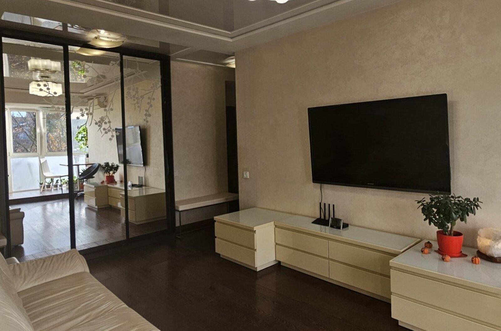 Пропонується світла та тепла трикімнатна квартира за адресою бульвар Павла Вирського 45. Площа квартири складає 61/43/6.5 м², включає дві окремі кімнати (12 та 13 м²) та велику кухню-guest room площею 22 м². Квартира двостороння, обладнана просторою гардеробною та роздільним санвузлом. Внутрішнє планування узаконене. Виконано якісний євроремонт із заміною сантехніки та електрики. Установлено систему відеоспостереження, бойлер, три кондиціонери та лічильники енергії. Будинок цегляний, з централізованою системою опалення та з гарною теплоізоляцією.