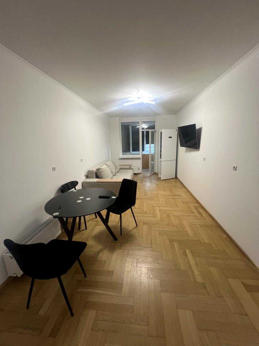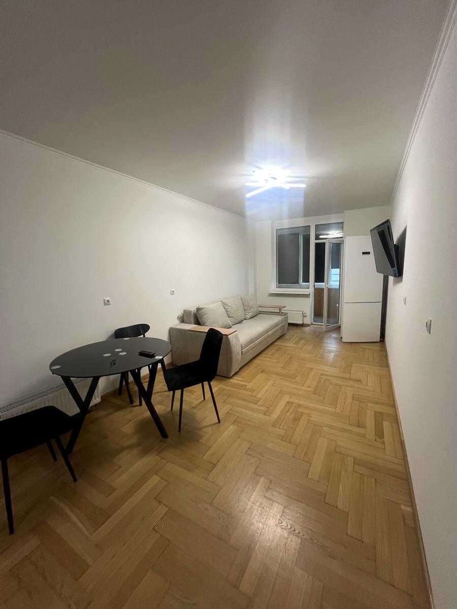 У ЖК на Ованеса Туманяна, 1-А, Київ, розташована нова квартира на третьому поверсі. Одностороннє планування включає простору кухню-вітальню, окрему спальню, санвузол та засклений балкон. Стильний класичний ремонт, добротний дубовий паркет, сучасна сантехніка європейських виробників, італійський кахель. Кухня обладнана технікою від провідних брендів. Великими панорамними вікнами та шумозахисними склопакетами наповнене світлом. Інфраструктура в окрузі включає магазини, спортклуби, кінотеатр та навчальні заклади. Станція метро Лівобережна – у 10 хвилинах пішки.