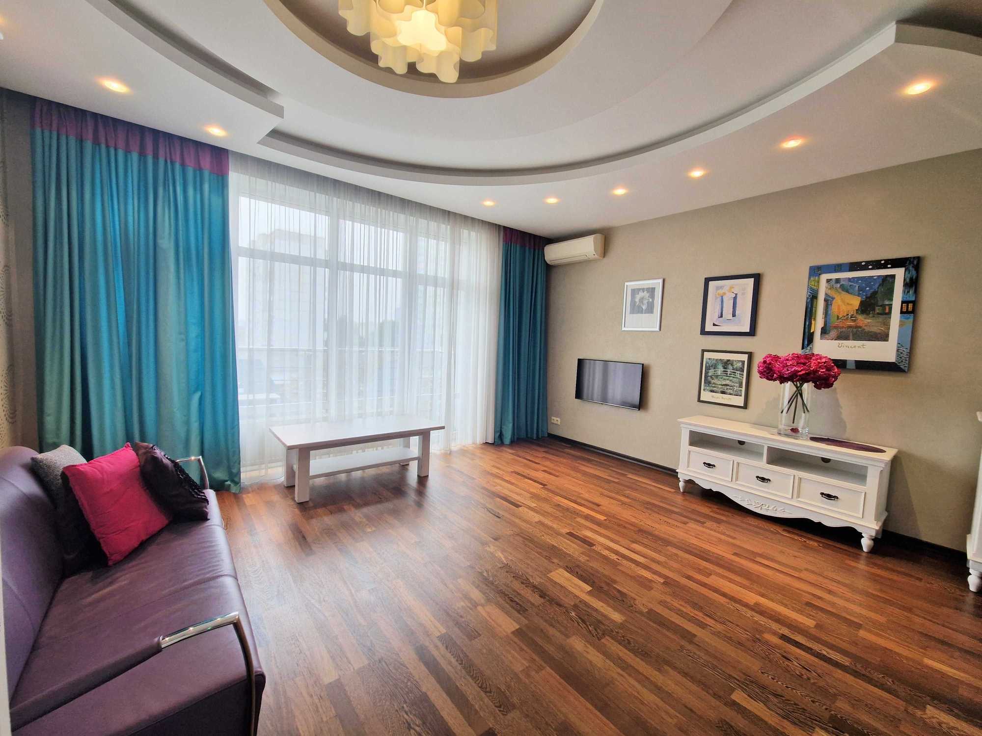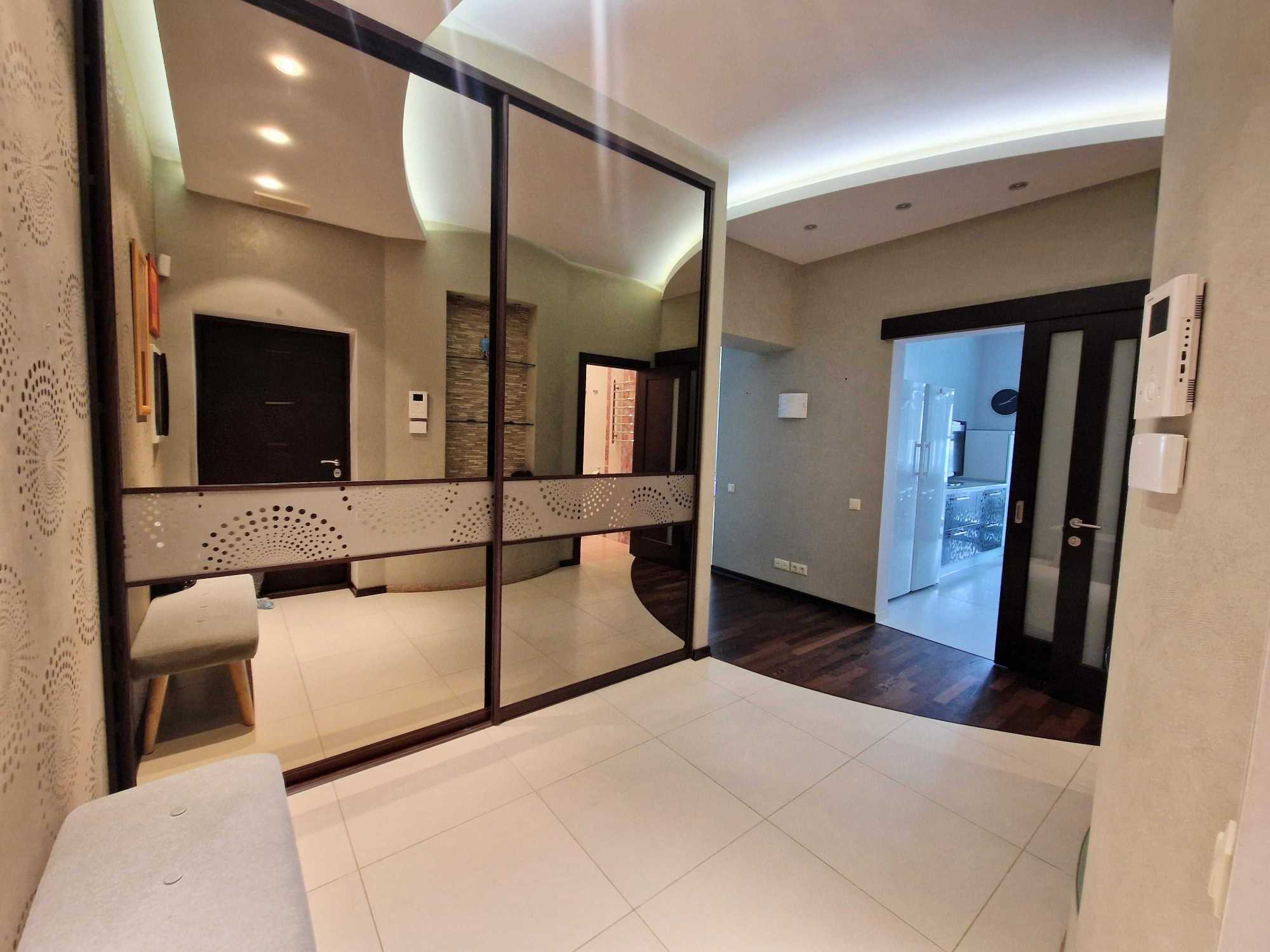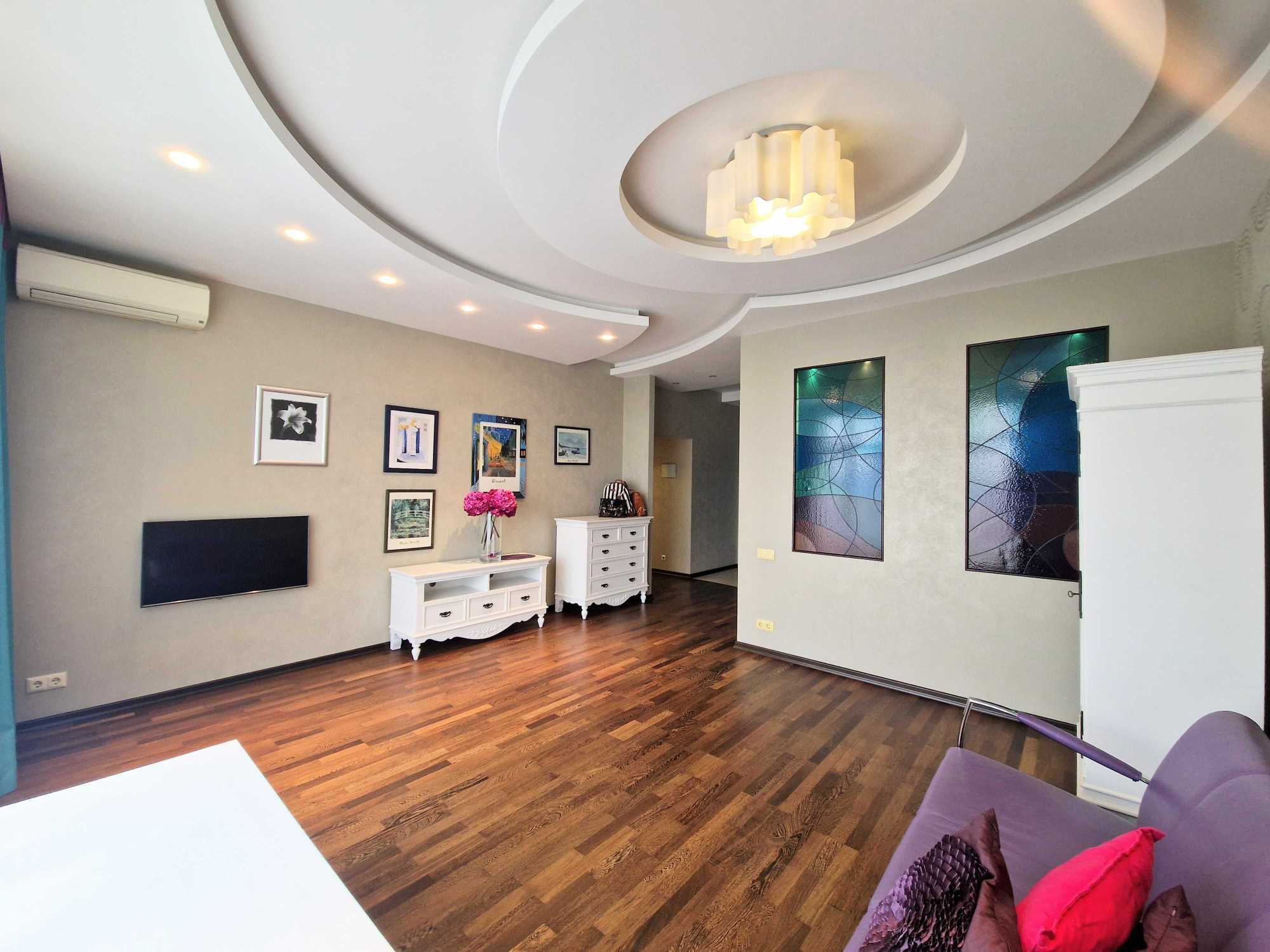 Пропонується в оренду простора 3-кімнатна квартира в ЖК Парус на вулиці Іллєнка 18Б. Площа квартири складає 120 м², включає дві окремі спальні, вітальню та кухню. Оснащена modern repair and furniture, квартира має кондиціонери, бойлери, пральну та посудомийну машини, телевізор та холодильник. Два санвузли та балкони, а також охорона та гостьова парковка. Висота стель 3,20 м, є три ліфти. У задоволенні мешканців - майданчик для прогулянок та підземний паркінг.