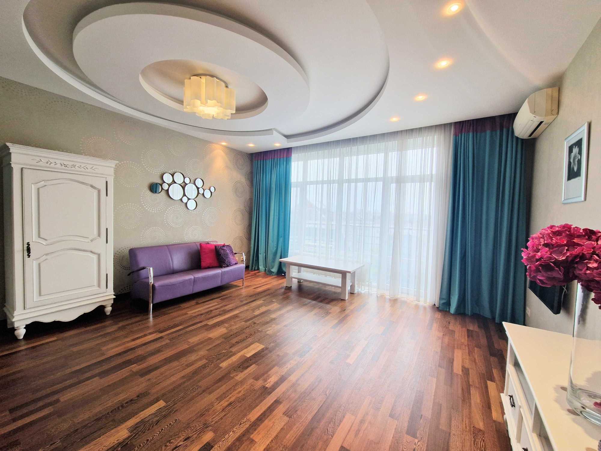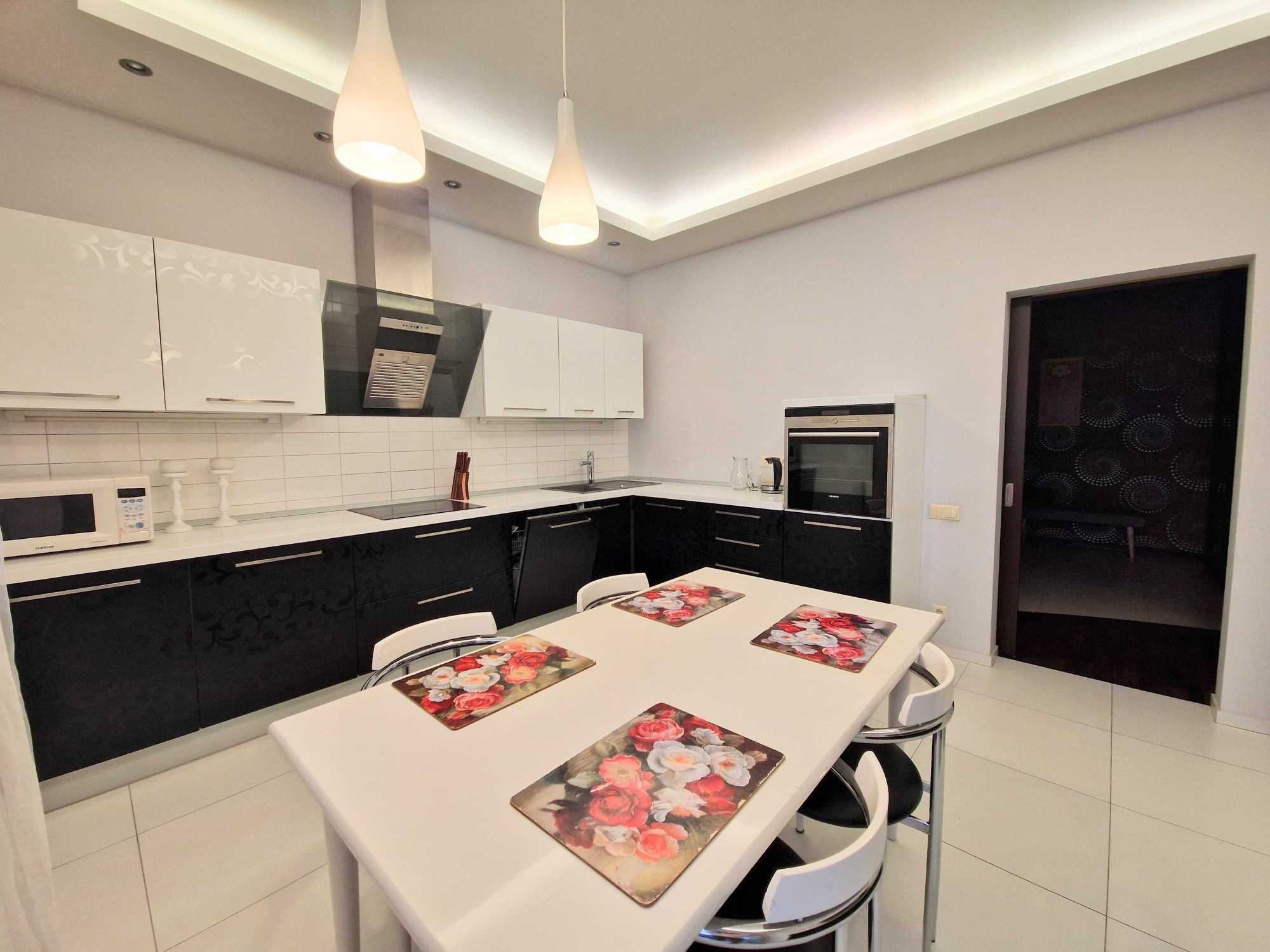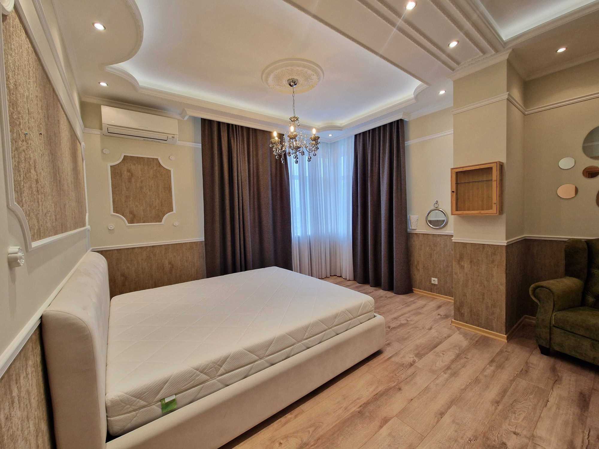 Пропонується в оренду простора 3-кімнатна квартира в ЖК Парус на вулиці Іллєнка 18Б. Площа квартири складає 120 м², включає дві окремі спальні, вітальню та кухню. Оснащена modern repair and furniture, квартира має кондиціонери, бойлери, пральну та посудомийну машини, телевізор та холодильник. Два санвузли та балкони, а також охорона та гостьова парковка. Висота стель 3,20 м, є три ліфти. У задоволенні мешканців - майданчик для прогулянок та підземний паркінг.