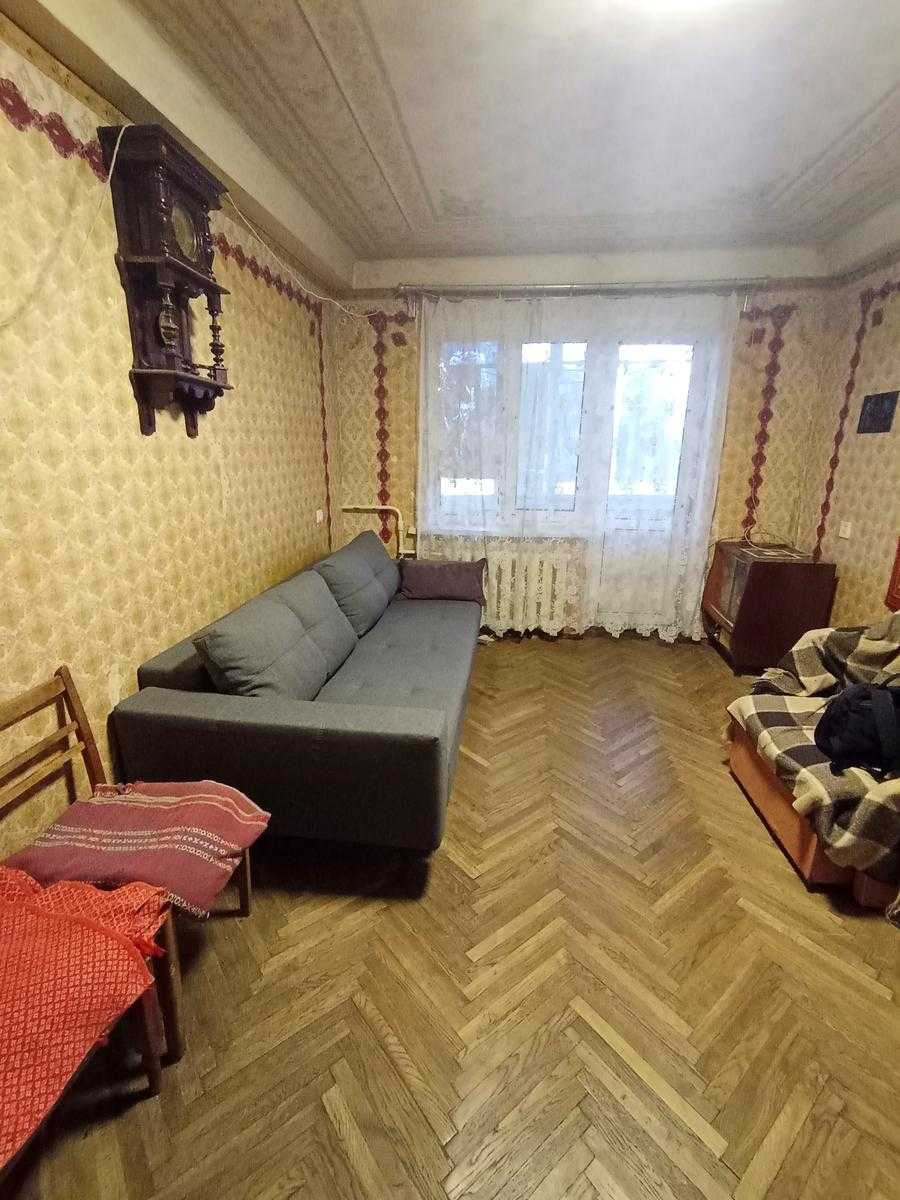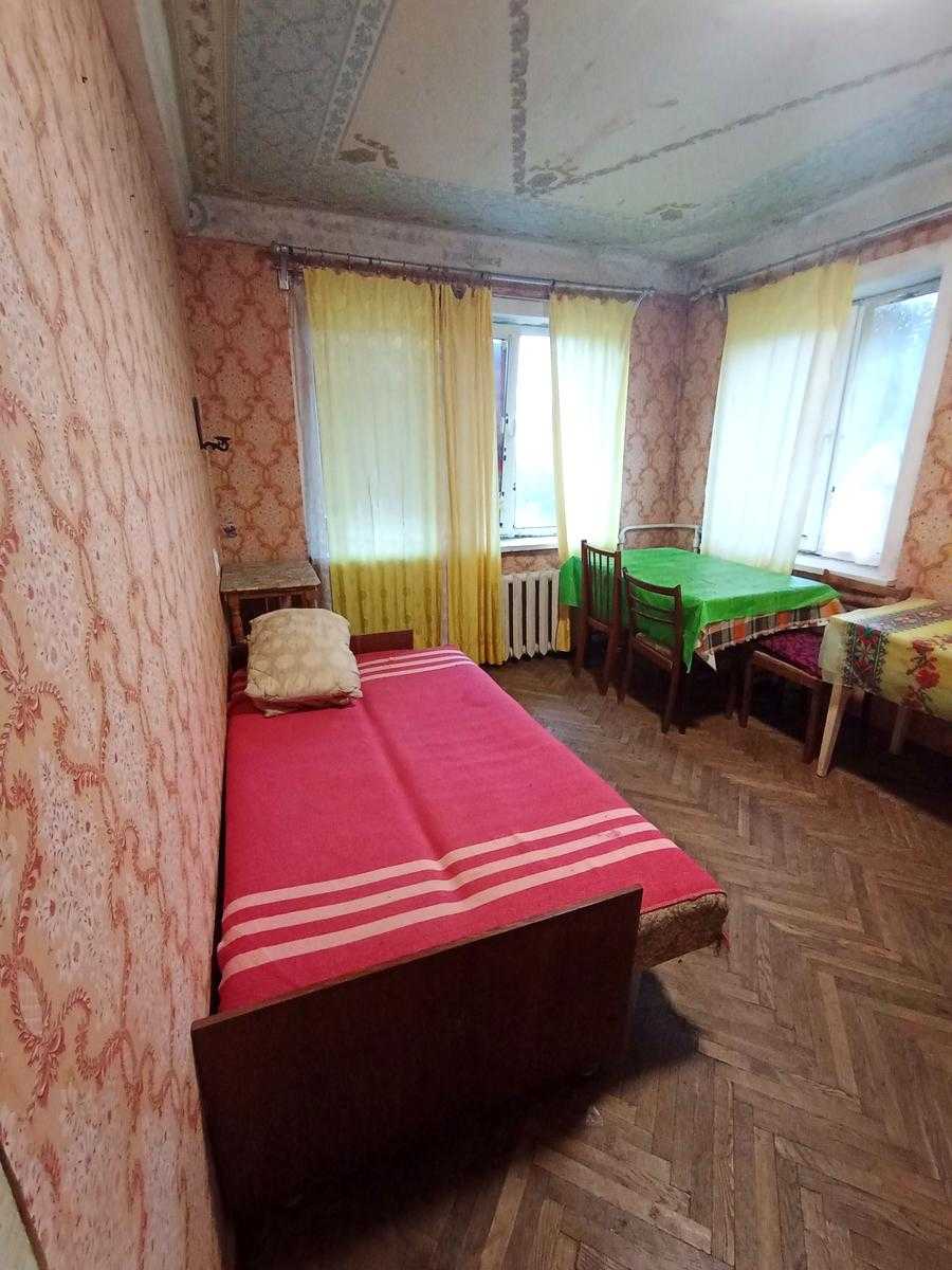 Квартира розташована за адресою: вул. Перемишльська, 7, в Подільському районі Києва. Пропонована 2-кімнатна квартира вимагає ремонту та має зручне суміжно-роздільне планування. Висота стелі складає 2.5 метра. Будинок цегляний типу "Хрущівка" з комфортним утепленням. Квартира з'являється як куточок з батареями під кожним вікном, що забезпечує теплоту. Дах має форму доміка, а загальний стан - без ремонту.