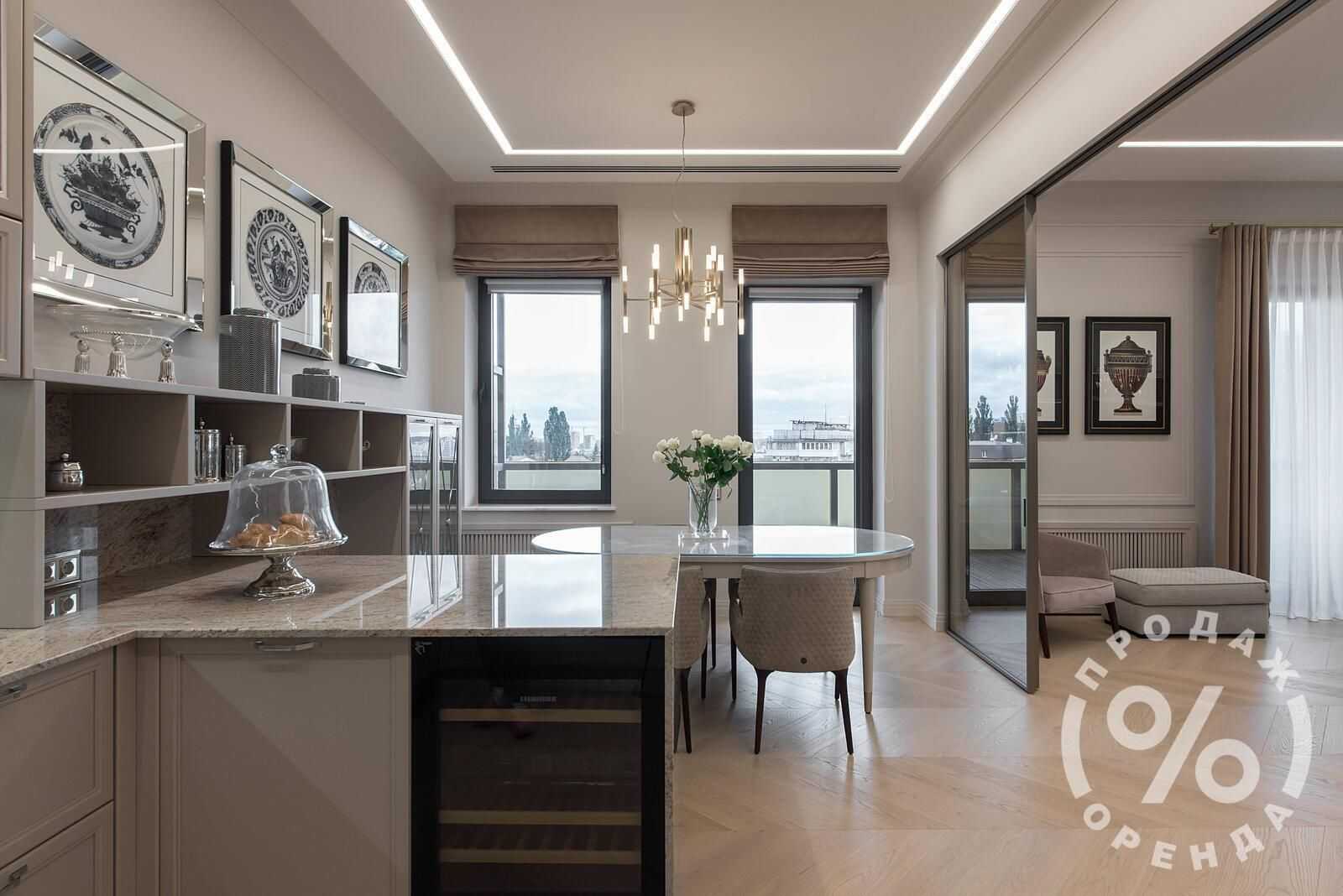 Пентхаус з терасою у Печерську на вулиці Глазунова, 13, пропонує простір площею 228 м² та панорамний краєвид. У квартирі три спальні з окремими санвузлами, велика вітальня, кухня з розсувними дверима, пральня та технічна кімната. Будинок клубного формату з 10 квартирами має закриту територію і охорону. Серед особливостей - система водоочищення, техніка Bosch, дизайнерські меблі, ремонт у люкс-стилі. Абсолютно нова, повністю мебльована квартира з двома паркомісцями, на відстані 15 хвилин пішки від метро.