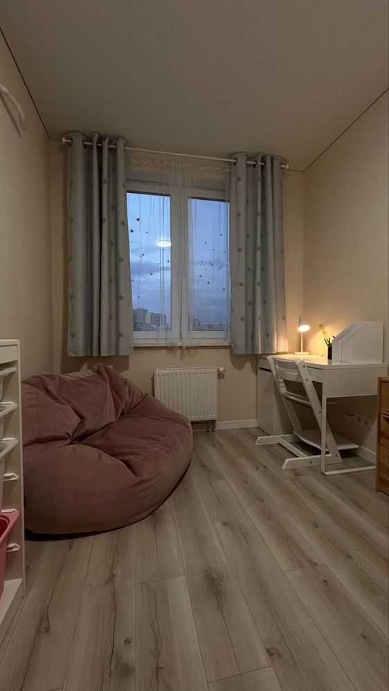 Пропонується 4-кімнатна квартира в Подільському районі на вул. Данченка, б. 32, 3 поверх. Квартира обладнана гардеробною, двома санвузлами та просторим коридором. Серед техніки - посудомийна машина, пралка з сушкою, бойлер на 100л, електричні підлоги у ванній і кухні. У кухні є диван, обідній стіл, телевізор та побутова техніка. Дитячі кімнати містять двоповерхове ліжко, робочий стіл та комоди. Спальня з двоспальним ліжком, кондиціонером, телевізором та комодом. Особливості включають закритий поверх, центральне опалення та зручну інфраструктуру поруч.