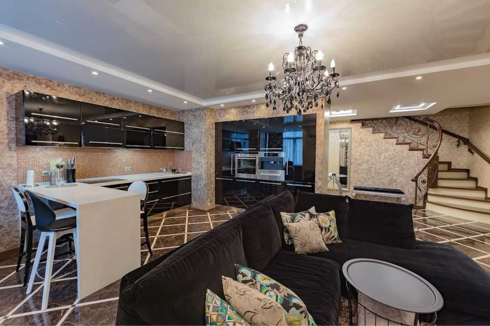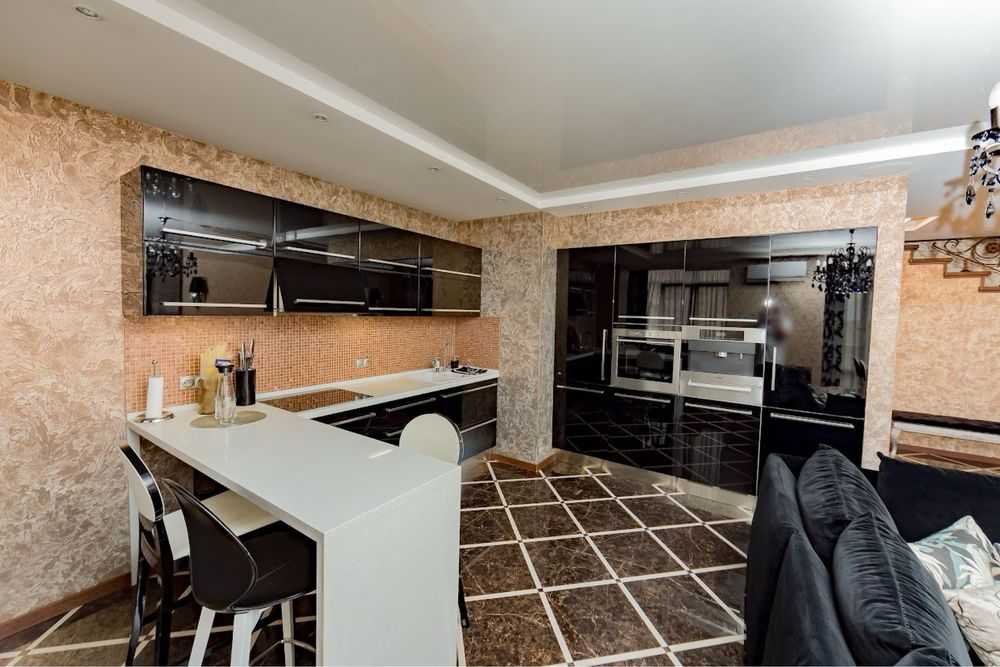 Пропонується дворівнева квартира в ЖК Ліко град, розташована на 14 та 15 поверхах. Загальна площа – 150 м². Перший поверх містить коридор, ванну кімнату з душем, технічне приміщення, гардеробну та кухню-студію з обідньою і відпочинковою зонами, а також дитячу кімнату. На другому поверсі розміщена ванна кімната з біде, спальна кімната з двоспальним ліжком та ще одна дитяча кімната. Квартира укомплектована сучасною побутовою технікою та меблями.