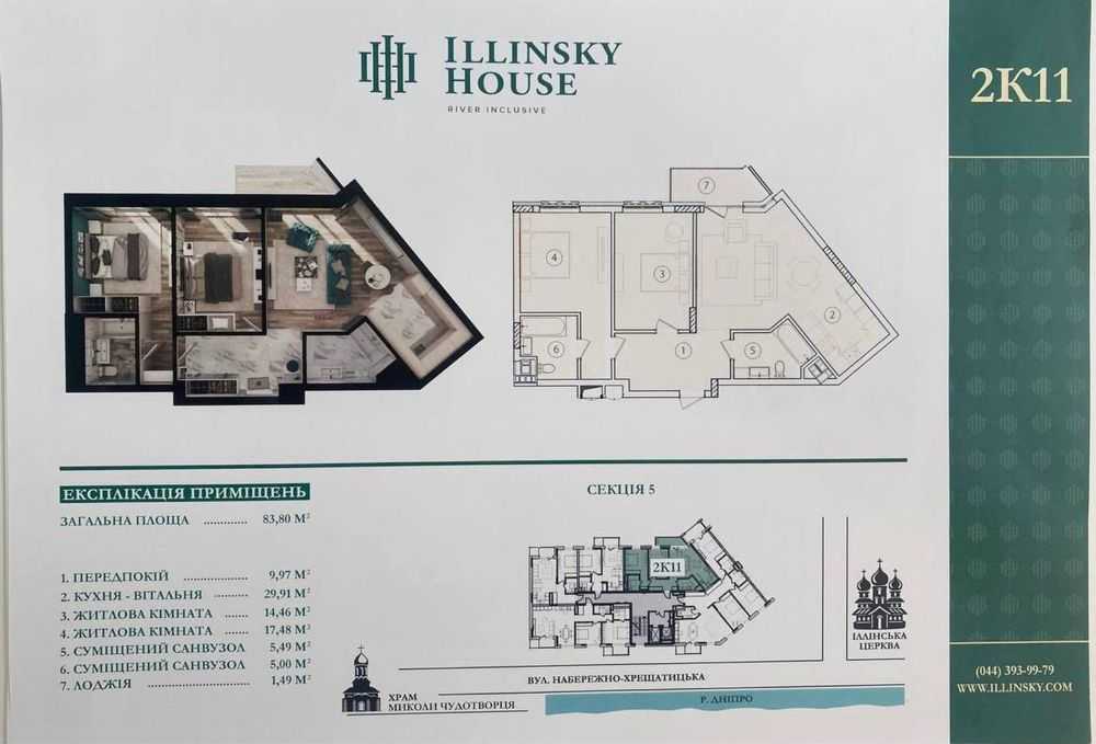 Пропонується до уваги квартира площею 82 м2 з двома кімнатами на 7-му поверсі восьми поверхового елітного ЖК Illinsky House. Житло після строївників, з 3-метровими стелями та балконом-террасою. Комплекс знаходиться в історичному районі Подолу, в оточенні старовинних вулиць і архітектури, що забезпечує тиху атмосферу. У будинку 125 квартир, двор без машин, охороняється для забезпечення безпеки мешканців. Поряд освітні установи та медичні заклади.