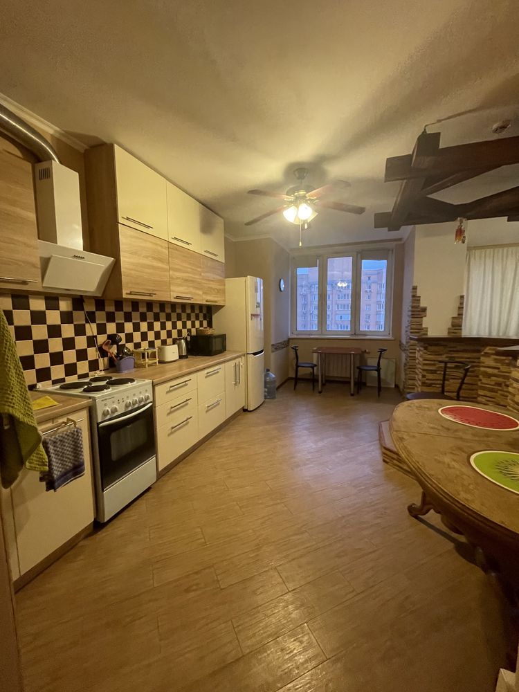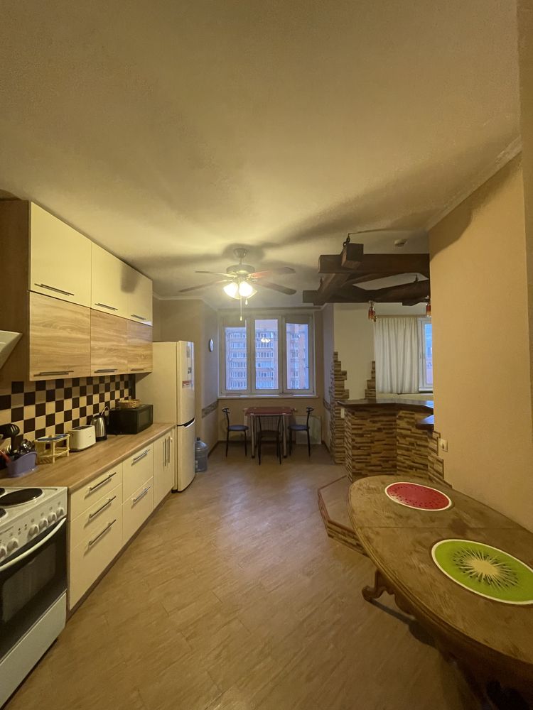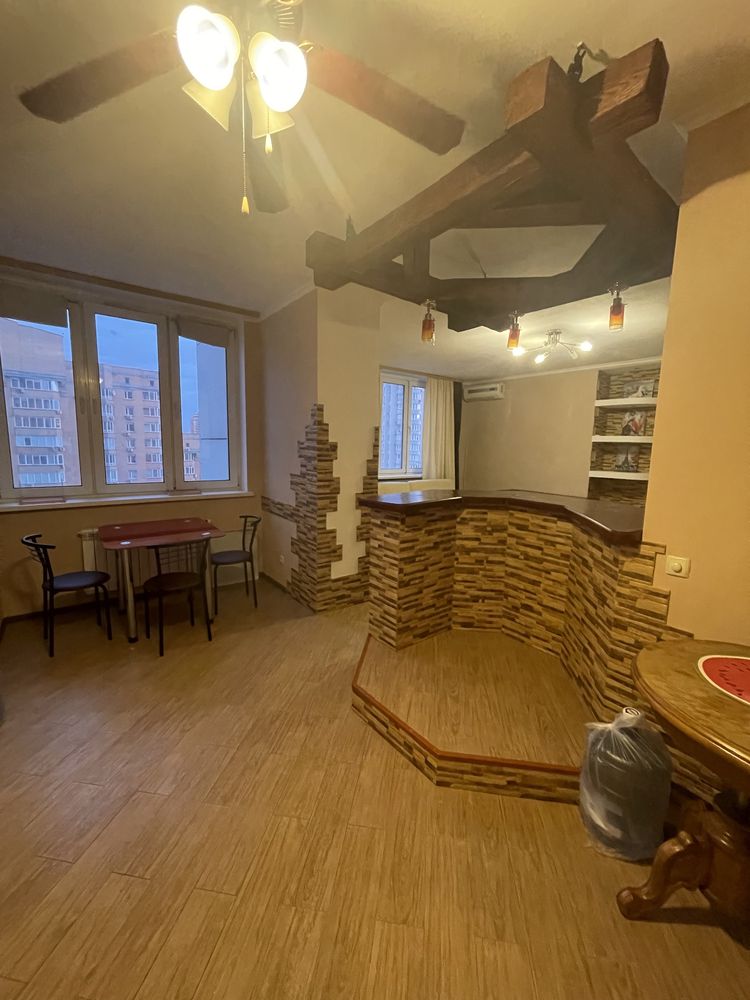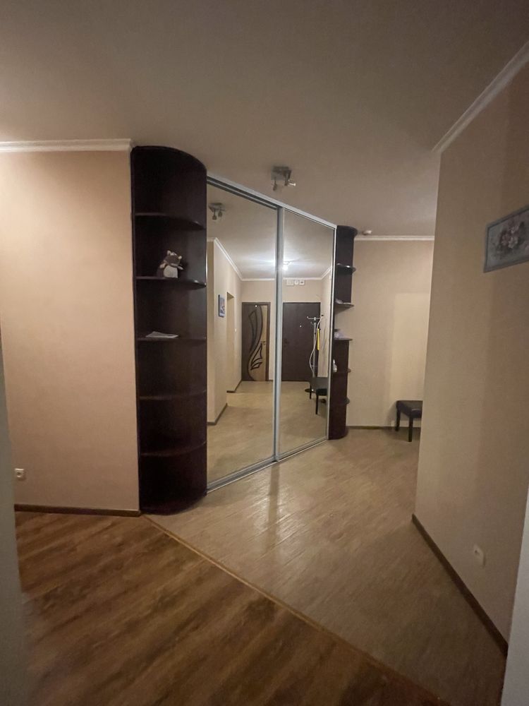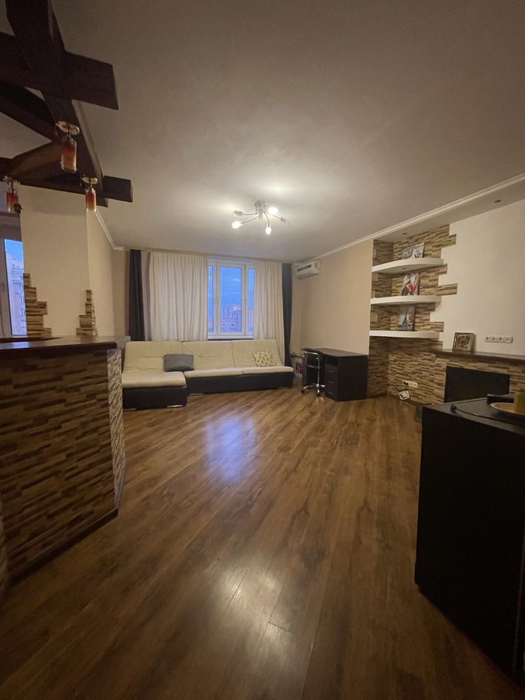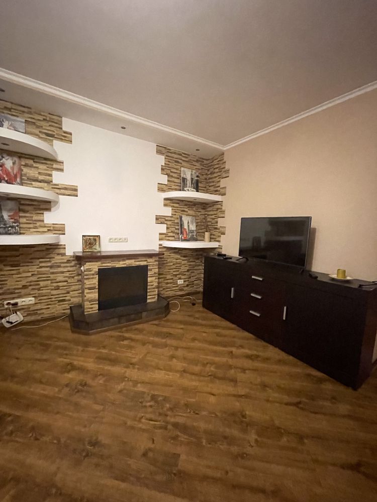 Пропонується в оренду двокімнатна квартира на 15-му поверсі ЖК "Корона" в Дарницькому районі Києва. Будинок має 35 поверхів, 4 високошвидкісних ліфта, підземний паркінг, консьєржа та систему відеоспостереження. Квартира складається з окремої спальні, великої гостинної, просторої кухні, балкону та двох санвузлів. Затишок створює камін, що працює на обігрів. Вона укомплектована меблями та усією необхідною технікою. Завдяки наявності лічильників комунікації контролюються. Поблизу знаходяться станція метро "Осокорки", торгові центри, школи, дитячі садки та спортивні клуби.