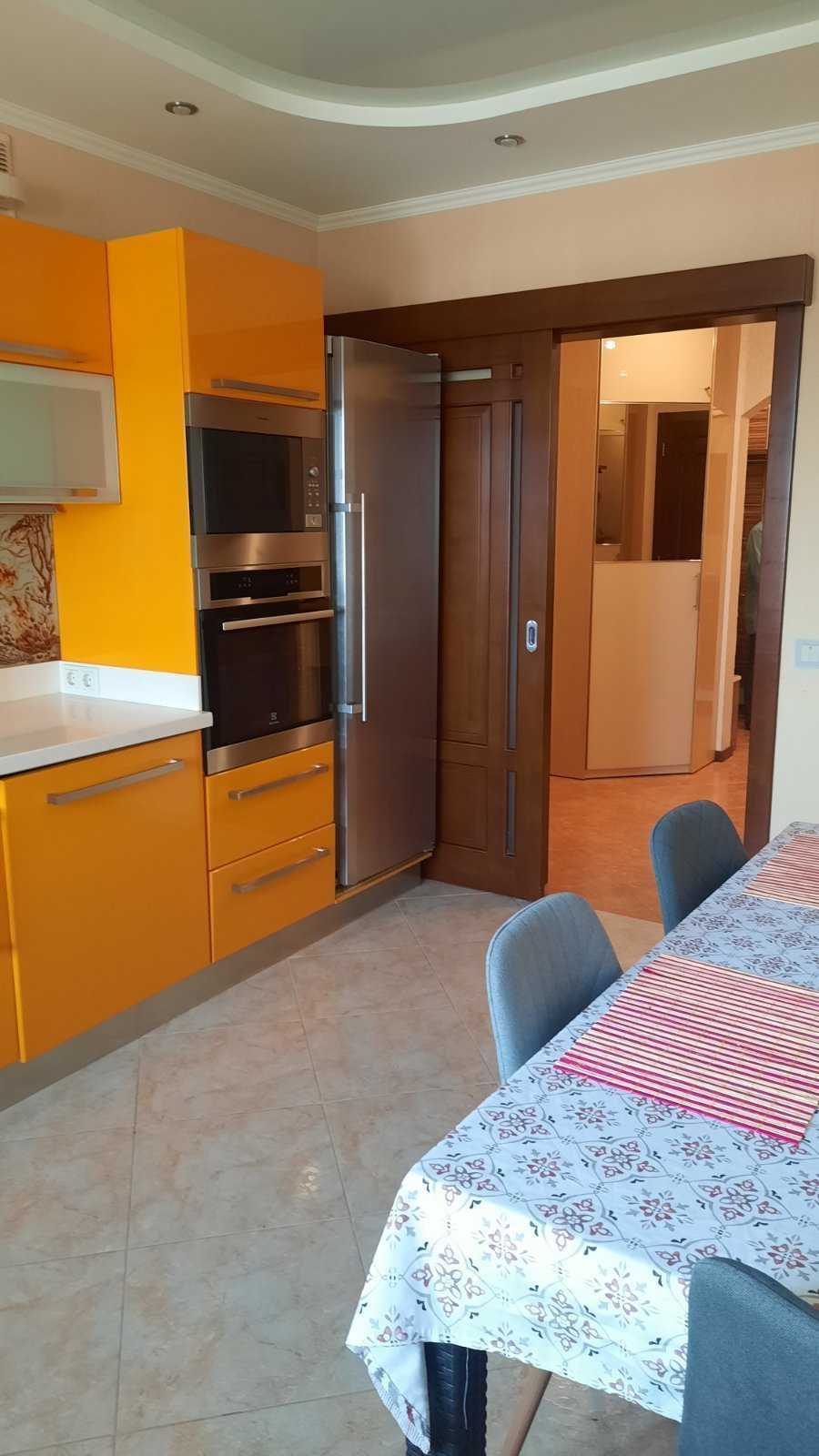 Пропонується велика 3-кімнатна квартира на Виноградарі, пр-т. Правди, 31. Розташована на 17 верстві 25-ти поверхового новобудови. В квартирі сучасний євроремонт, нова меблі та побутова техніка, включаючи великий холодильник, пральну машину, телевізор та кухонну техніку. Кожна кімната обладнана кондиціонером, є два санвузли з душовими кабінами та бойлерами. У квартиру входить гардеробна кімната, застеклені балкони та шумоізоляція. Закрита територія з охороною та консьєржем, парковка для автомобілів. Поруч ТРЦ, супермаркети, кафе та транспортні зупинки.