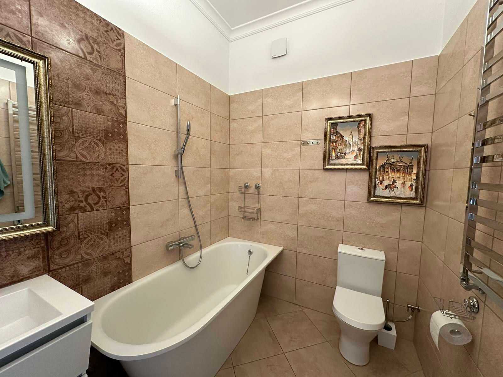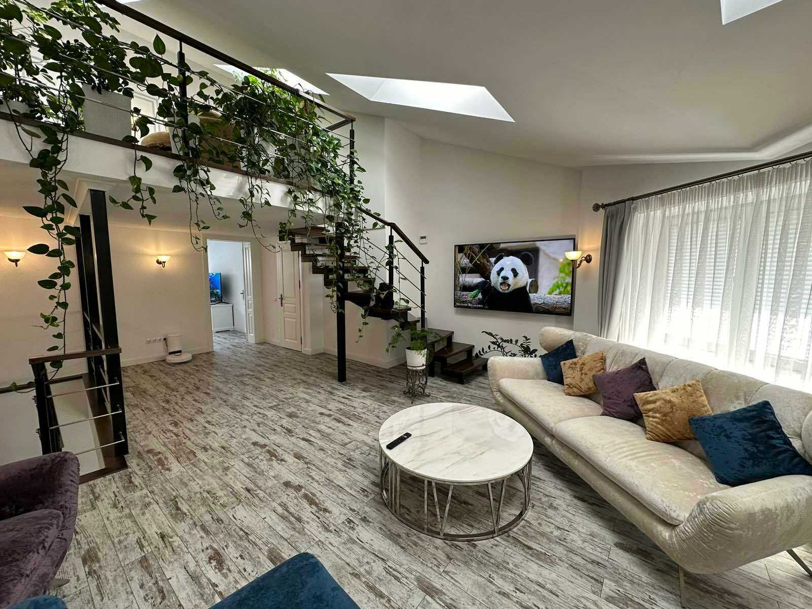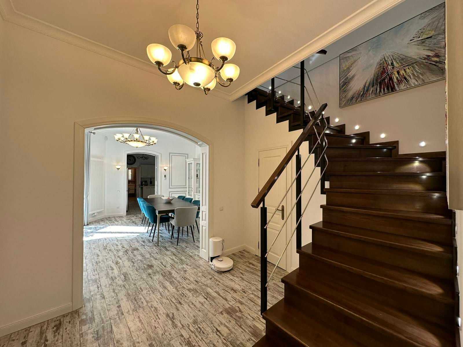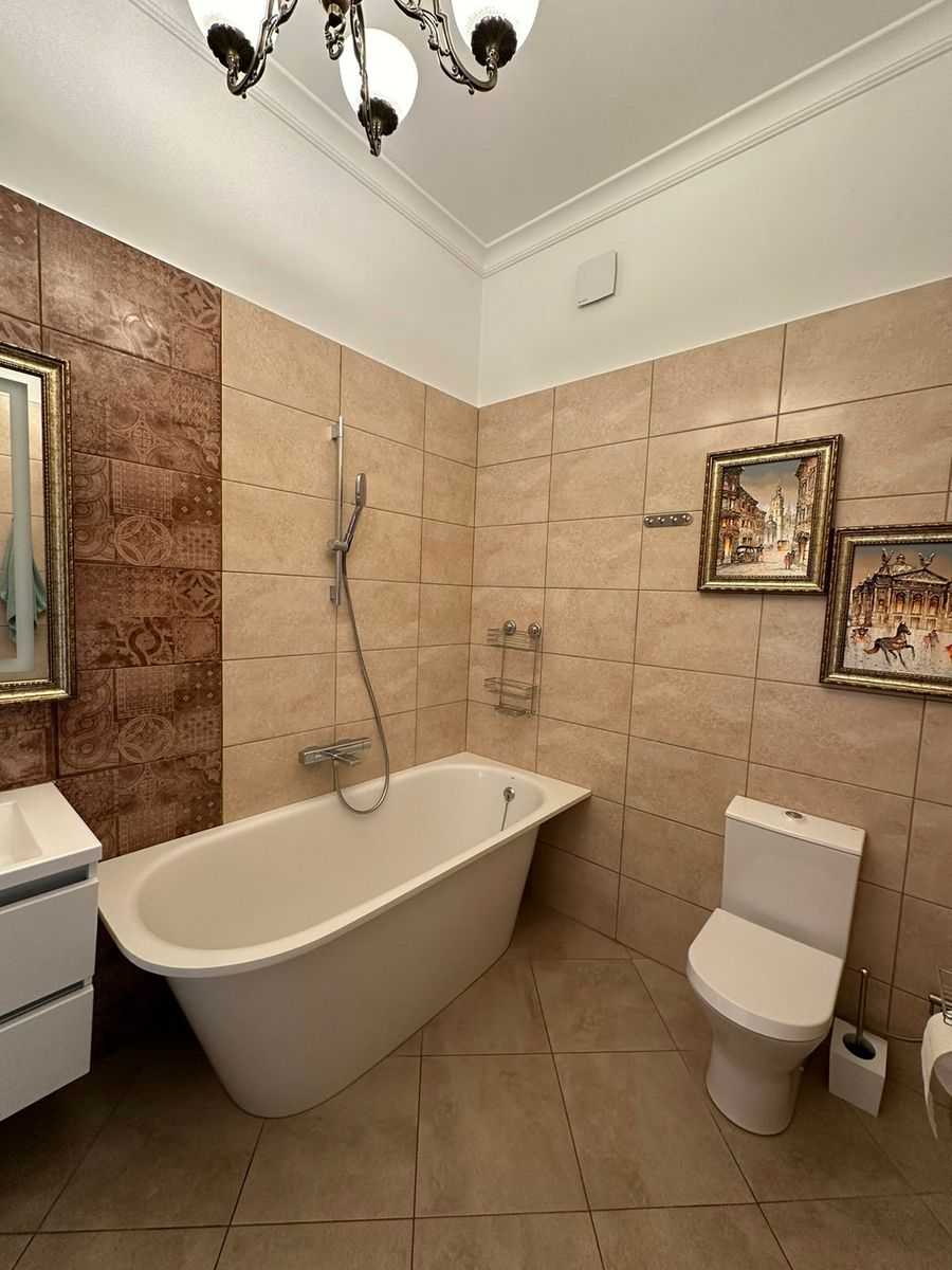 Пропонується двоповерхова квартира в центрі Львова на вулиці Мосяжній. Загальна площа 182 кв.м, розташована на третьому поверсі. На першому рівні є спальня, кухня з виходом на великий балкон, столова, санвузол та гардероб. Другий рівень включає просторий хол, дві спальні та ще один санвузол. В квартирі встановлено індивідуальне опалення, замінено всі комунікації. Поряд школа, дитячий садок, супермаркет та розважальні заклади.
