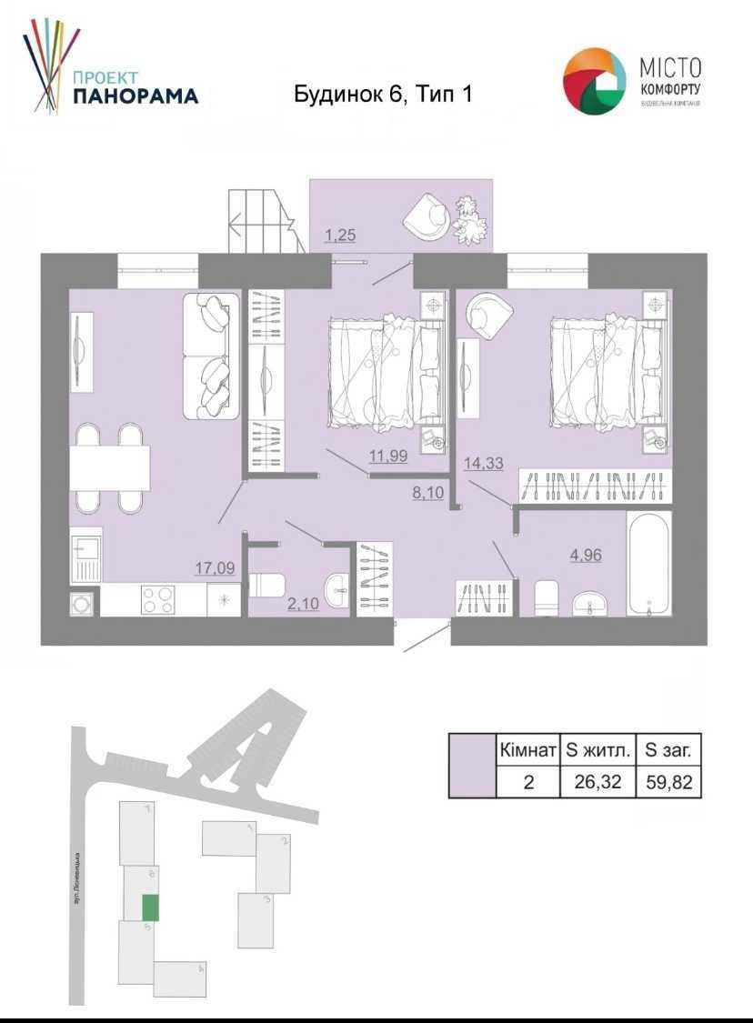 Пропонується 2-кімнатна квартира в новому житловому комплексі "Панорама" в м. Пустомити на вул. Ліснивецька, 9. Загальна площа складає 60 м². Квартира має індивідуальне опалення та оснащена сучасним котлом. Будинок зданий, є ліфт для зручності мешканців.
