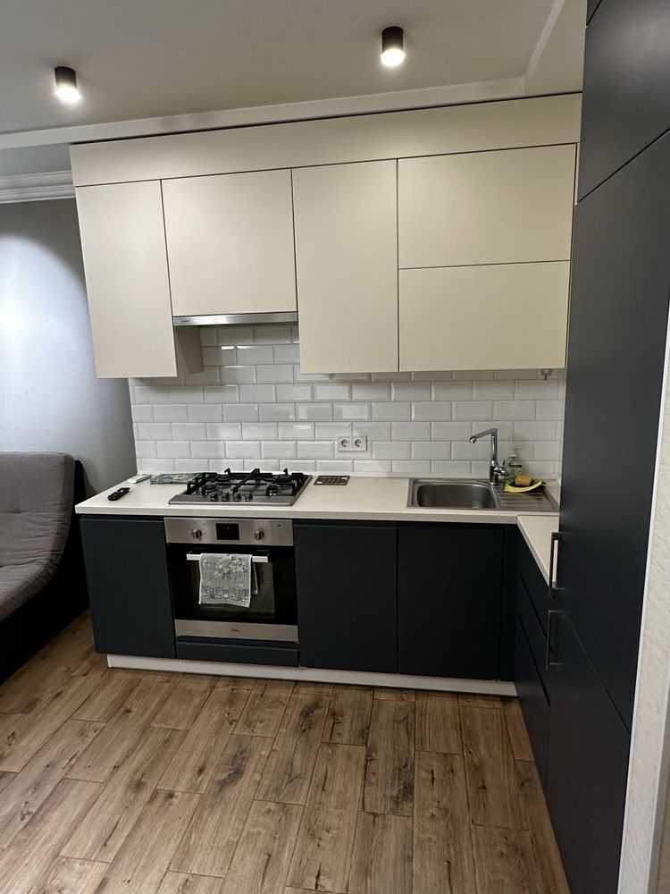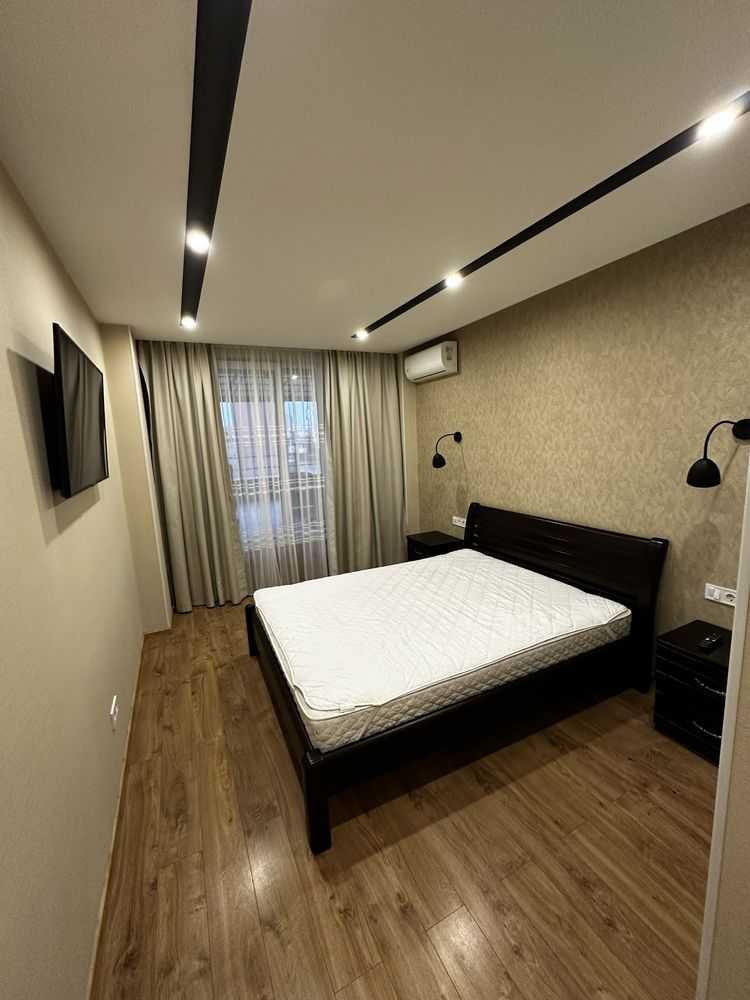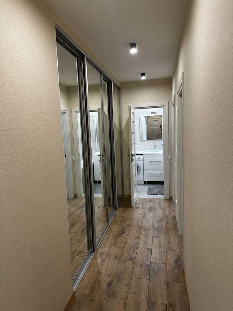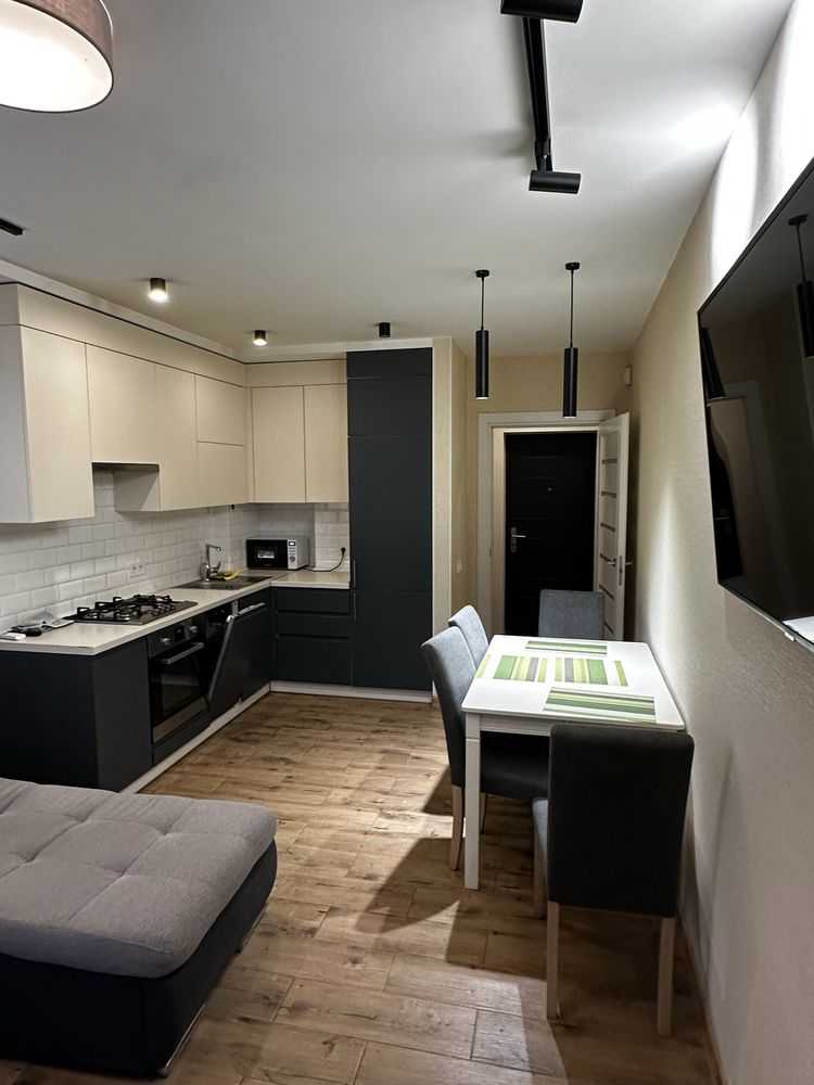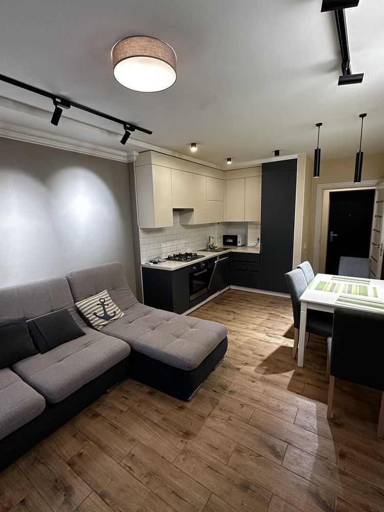 Двокімнатна квартира з кухнею-студією в ЖК "5 Авеню" на вул. Городницькій. Площа 68 м², поверх 2 з 10. Пропонується з євроремонтом, індивідуальним опаленням та підігрівом підлоги. У квартирі є три кондиціонери, посудомийка, два телевізори, а також дві окремі спальні. Серед зручностей — роздільний санвузол з ванною, сигналізація та кладовка на терасі площею 35 м². Для під'їзду встановлено шлагбаум.