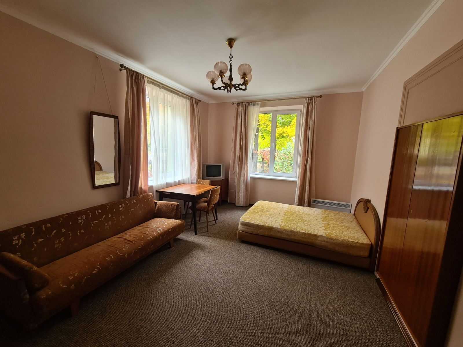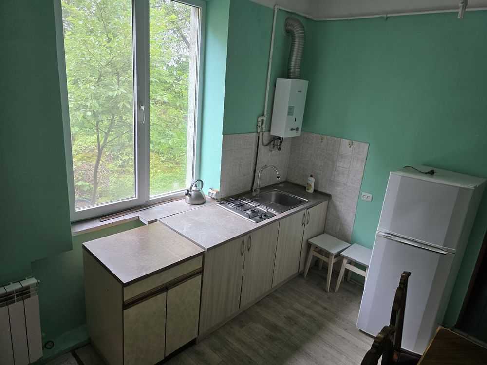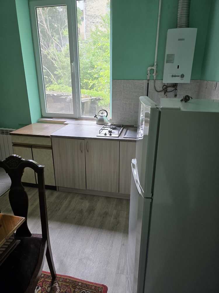 Пропонується 1 кімнатна квартира в будинку особнячного типу, розташована близько до площі Петрушевича. В квартирі гарне зелене подвір'я та доступне місце для паркування автомобіля. Кухня спільна на дві квартири, але кожна з них має свої меблі та техніку.