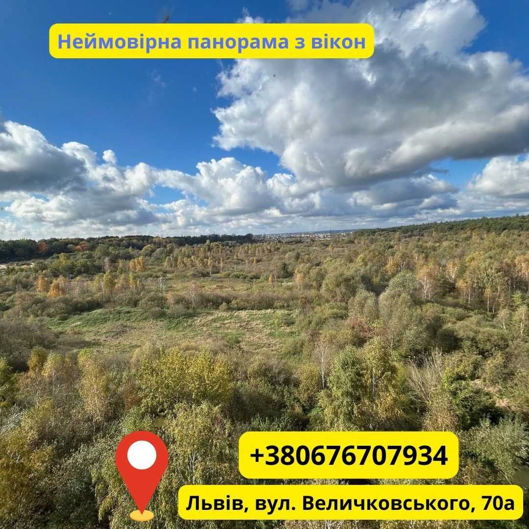 Квартира розташована у Львові, на вул. Івана Величковського, 70б, у сучасному житловому комплексі "Зелений двір". Це простора 2-кімнатна квартира площею 72 м² на 11-му поверсі. Будинок введено в експлуатацію, має зручне місце розташування в тихому районі Рясне-2 з розвиненою інфраструктурою – поряд є школа, лісопаркова зона та зупинки громадського транспорту. В квартирі роздільне планування, що дозволяє раціонально використовувати простір.
