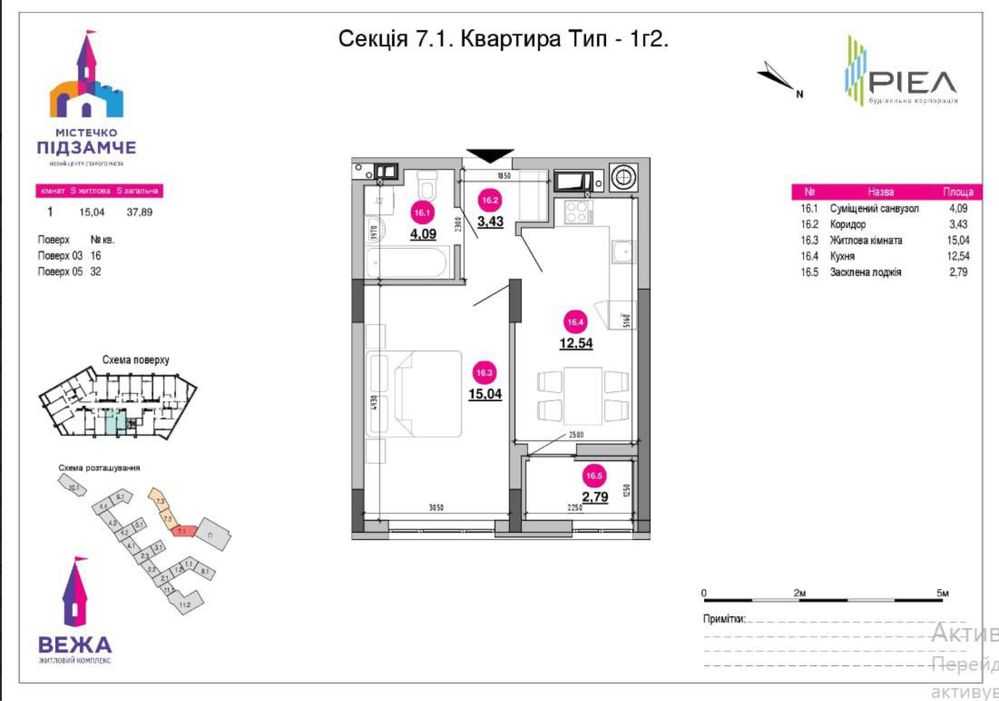 Пропонується квартира в новому житловому комплексі "Містечко Підзамче". Об'єкт розташований на 5-му поверсі 10-поверхового будинку, площею 37.89 кв.м. Квартира має однокімнатне планування та знаходиться в секції 7.1, буд. Вежа 3. Комплекс забезпечений розвинутою інфраструктурою, включаючи власну школу та два дитячі садочки. "Вежа" є важливим елементом інфраструктури комплексу, забезпечуючи комфортне проживання для мешканців.