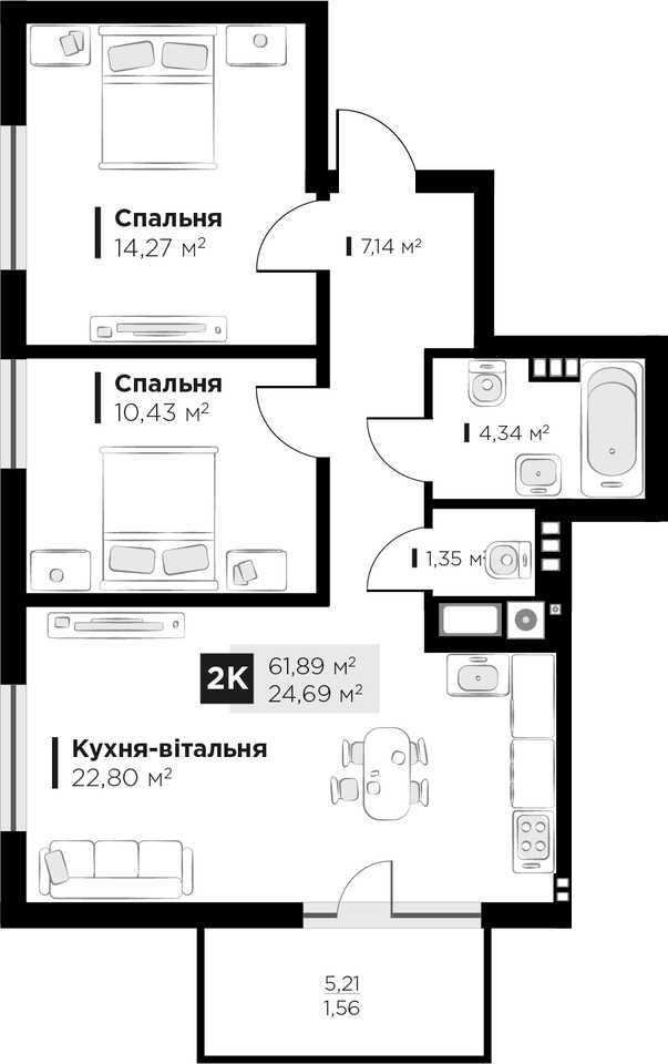 Пропонується квартира в ЖК Feel House площею 62 м.кв у селі Сокільники, на вулиці Героїв Крут. Квартира розташована на 4 поверсі 5-поверхового будинку малоповерхового проєкту, в новому районі з закритим двором та відеоспостереженням. Наявне паркомісце площею 14 м.кв. У близькість розташовані ТРЦ Кінг-крос та Вікторія Гардens, ресторани та зони відпочинку. До центру Львова всього 10 хвилин на автомобілі.