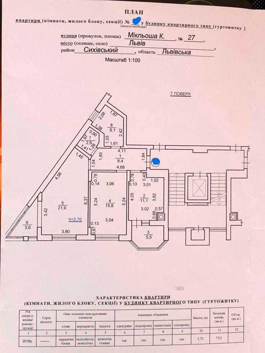 Пропонується двокімнатна квартира в новому житловому комплексі Арена, що знаходиться на вулиці Карла Мікльоша, Львів. Загальна площа житла становить 75 м², включаючи 63.9 м² житлової площі та 11.1 м² кухні. Квартира на 7-му поверсі з 10, має індивідуальне опалення та дві лоджії. Просторе планування з ізольованими кімнатами, два суміжні санвузли, один з вікном. Будинок введено в експлуатацію. В околицях розташовані школа, дитячий садок, супермаркет та зупинки громадського транспорту.