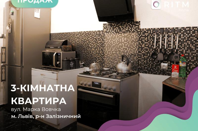 Трикімнатна квартира розташована в австрійському кирпичному будинку на вулиці Марка Вовчка. Загальна площа становить 63,1 м², з житловою площею 46,4 м² та кухнею 9,5 м². Квартира знаходиться на другому поверсі з трьох, має роздільне планування та сучасний ремонт. Опалення – індивідуальне газове. Район тихий з розвинутою інфраструктурою, всього кілька хвилин до центру міста.