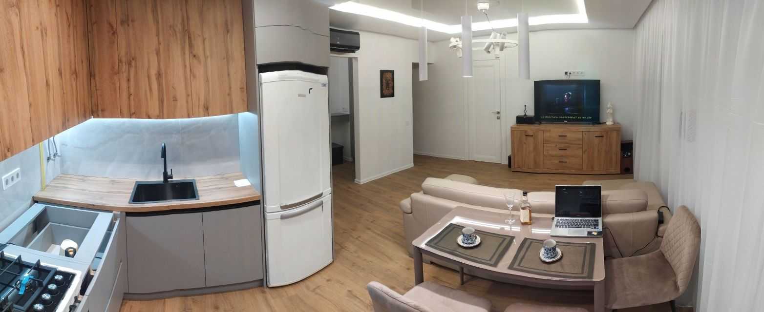 Квартира розташована на вулиці Дорошенка, в центрі Львова. Загальна площа складає 51 кв.м., що включає зручну кухню-студію та спальню з окремою гардеробною. Завдяки стратегічному розташуванню, мешканці можуть легко дістатися до основних туристичних атракцій та культурних центрів міста.