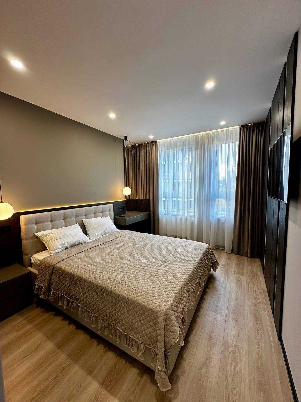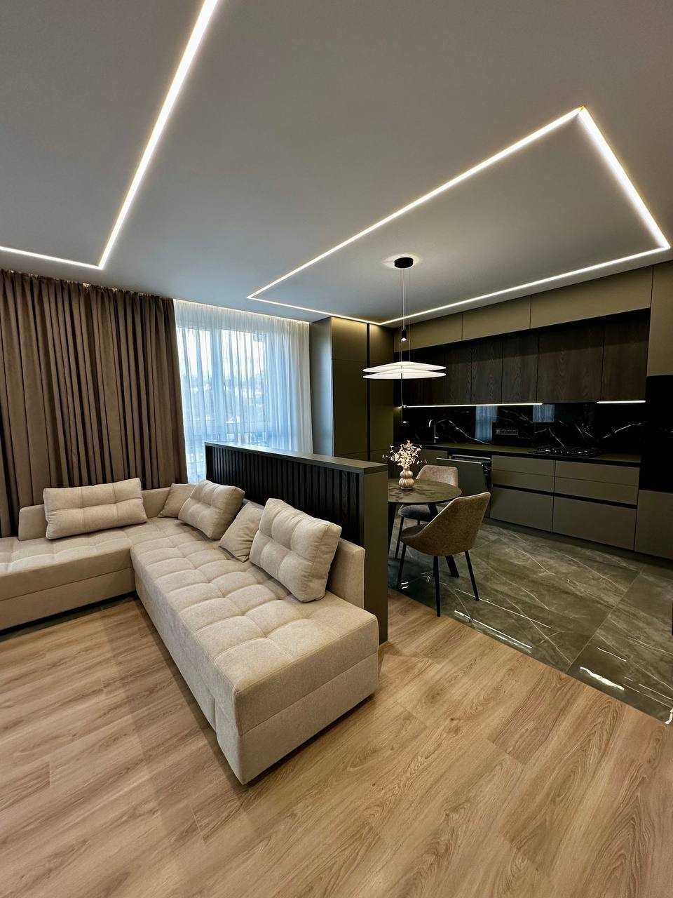 Двокімнатна квартира в ЖК Avalon Flex на вул. Топольна. Загальна площа 67 м.кв, розташована на 7-му поверсі 10-поверхового будинку. Квартира з кухнею-студією, індивідуальним газовим опаленням, підігрівом підлоги. Меблі та побутова техніка включають двоспальне ліжко, розкладний диван, шафи, газову варильну поверхню, мікрохвильову піч, духовку, пральну машину, 2 телевізори, WI-FI. Додатково: є балкон-тераса, кондиціонери, суміжний санвузол з ванною. Закритий тип території, поруч є парк, дитячі майданчики та зупинка громадського транспорту.
