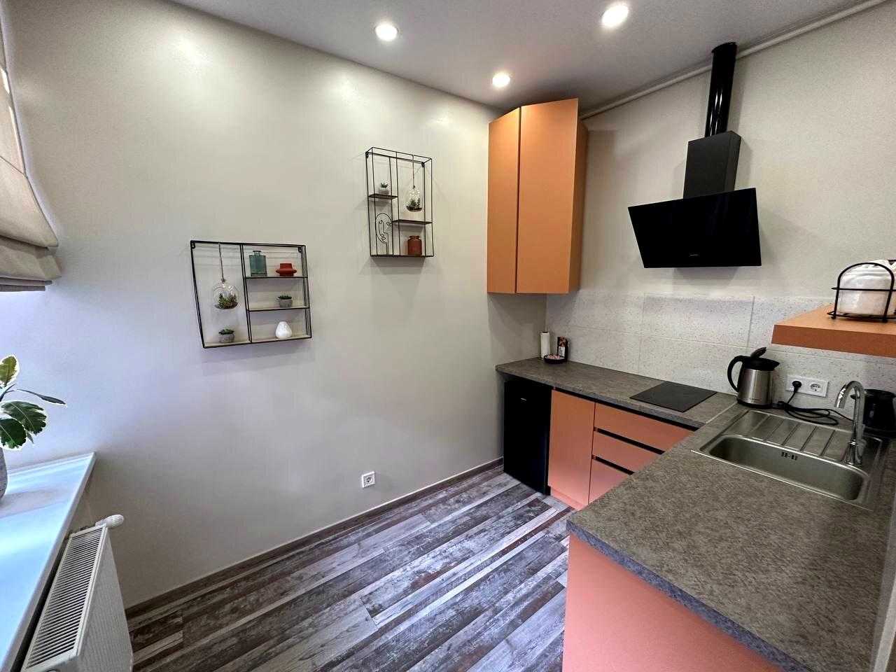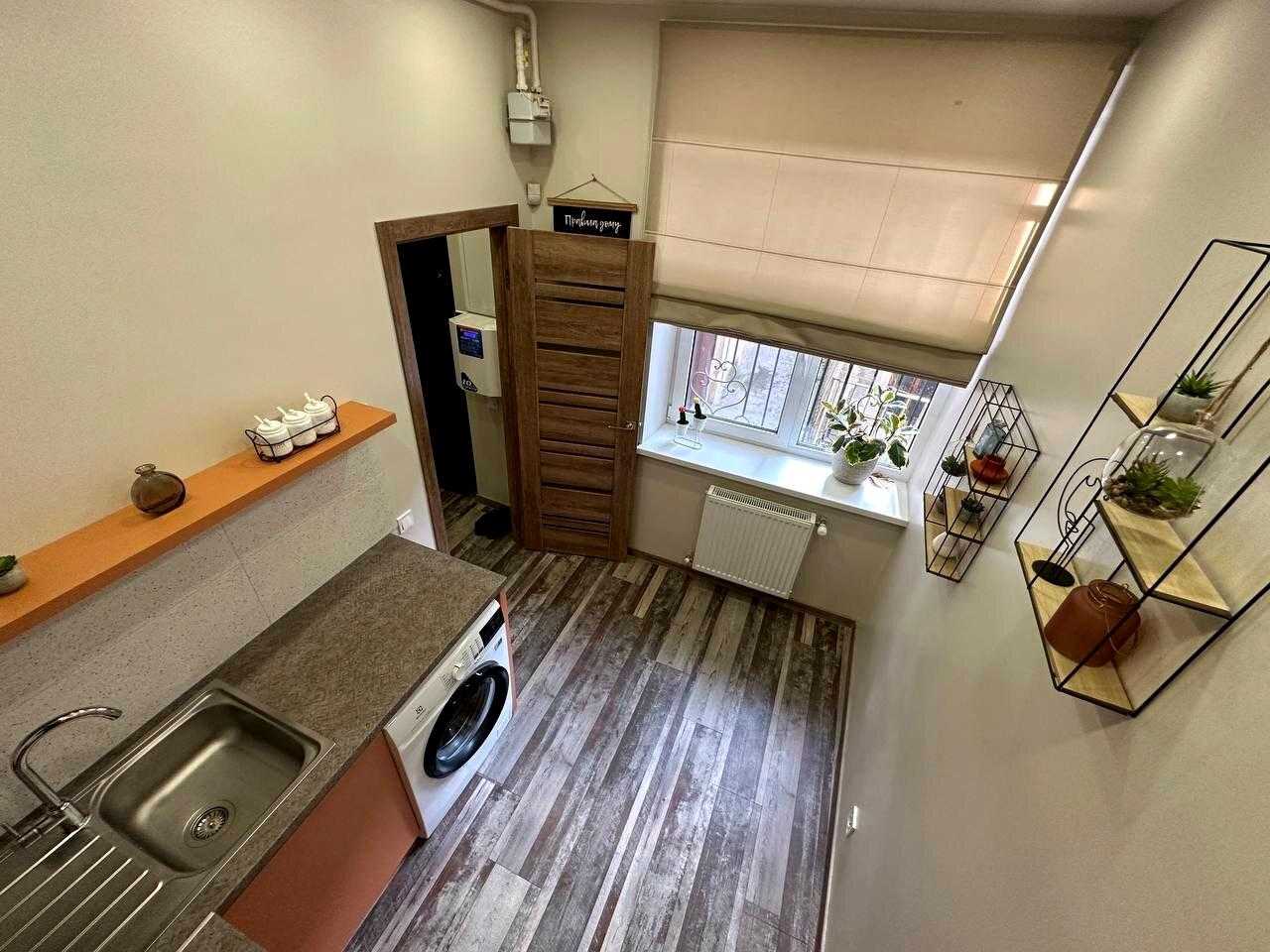 Однокімнатна квартира розташована на вулиці Газовій в центрі Львова. Вона включає кухню, вітальню, спальню та санвузол, укомплектована всім необхідним для комфортного проживання. Квартира має індивідуальне опалення, кондиціонер, сигналізацію, стабілізатор напруги та Інтернет. Вікна виходять на вулицю Газову та внутрішній двір. У будинку - стара цегла. На території знаходяться парк, супермаркет та інфраструктура для дітей.