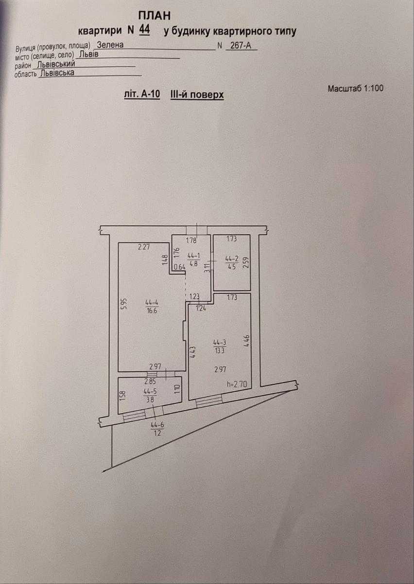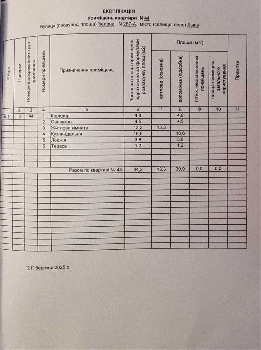 Пропонується 1-кімнатна квартира в ЖК «ТАМ ТАМ» на вул. Зелена, 267А у Львові, Сихівському районі. Квартира розташована на 3-му поверсі 9-поверхового будинку, загальна площа складає 44,2 м², з розділом 13,3 м² для кімнати та 16,6 м² кухні. У квартирі є балкон, не кутова, встановлений газовий котел і лічильник. Будинок зданий, сусіди завершують ремонтні роботи. Ліфт працює, є конс’єрж.