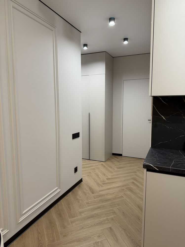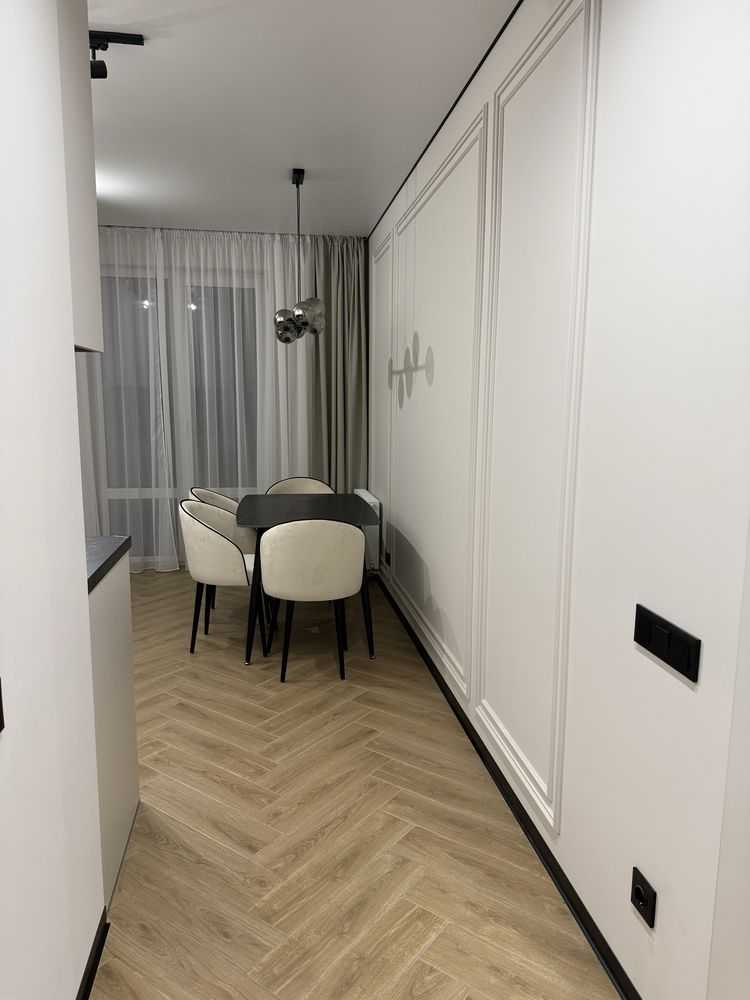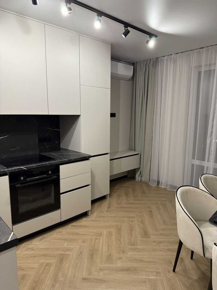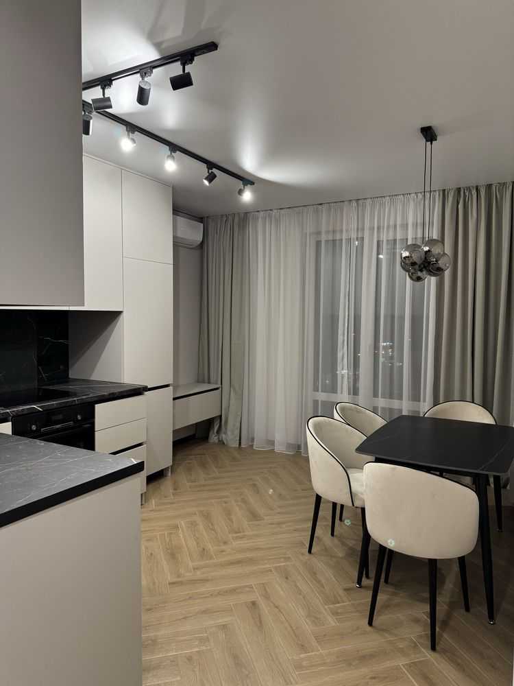 Пропонується однокімнатна квартира площею 43 м2 у новобудові на вул. Щирецькій у Львові. Розташована на 7 поверсі, з двостороннім плануванням та відкритим балконом з кухні. Квартира оснащена всім необхідним: кондиціонери, прально-сушильна машина LG, бойлер, індукційна варильна поверхня і духовка Bosch, посудомийна машина, підігрів підлоги (окрім спальні). Меблі виготовлені на замовлення з продуманим дизайном. Будинок з підземним паркінгом та створеним ОСББ.