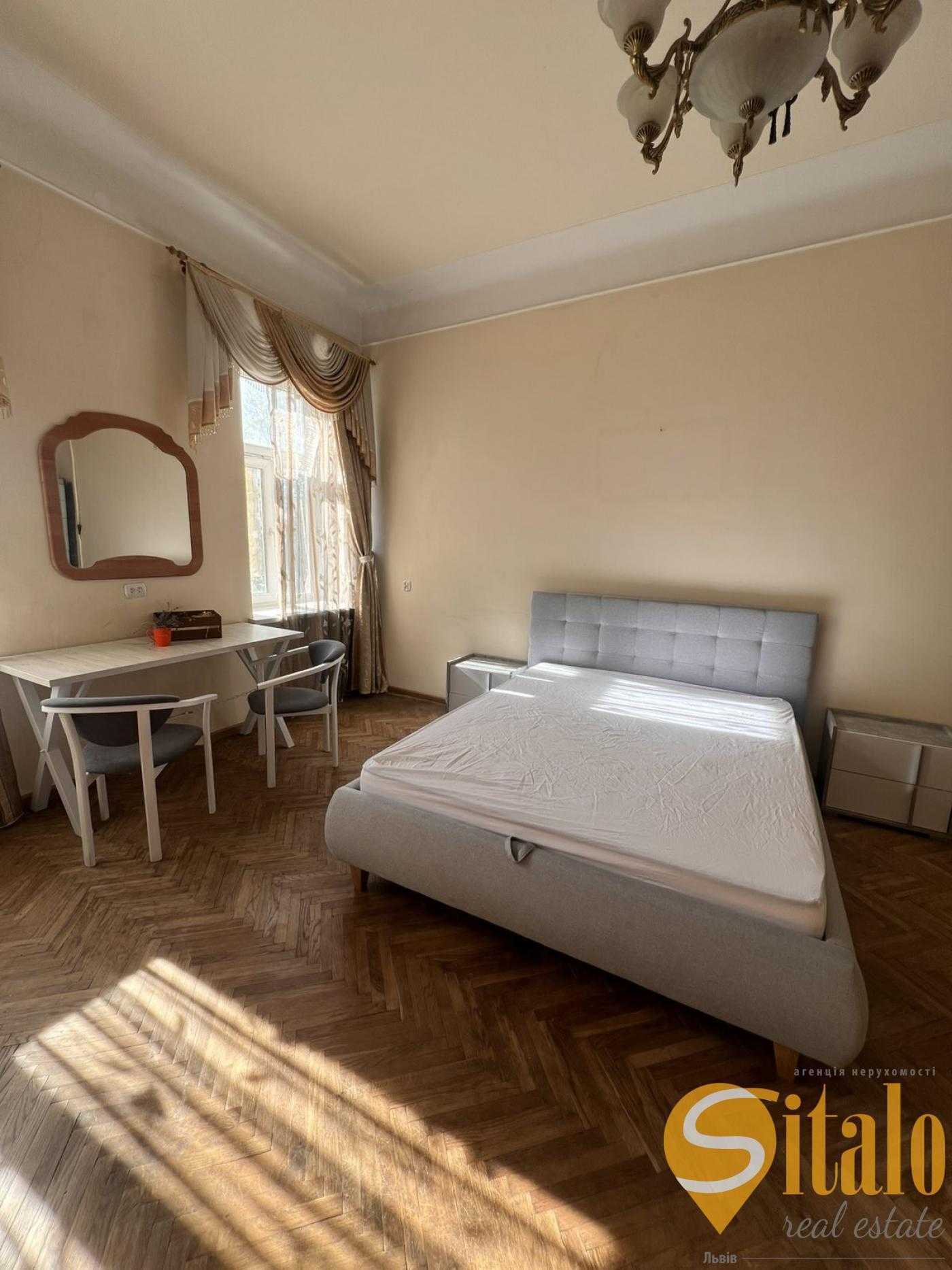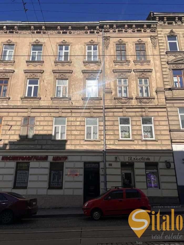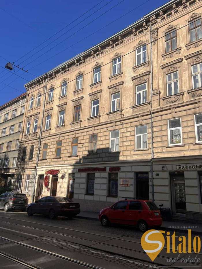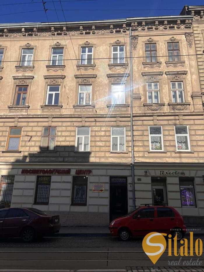 Однокімнатна квартира в австрійському будинку на 3-му поверсі по вулиці Личаківська у Львові. Загальна площа 39.2 м.кв., житлова 26.8 м.кв., кухня 9.7 м.кв. Високі стелі (3.36 м), дерев'яне перекриття, пічне опалення та колонка для гарячої води створюють зручні умови. Два фасадних вікна з виглядом на вулицю. Роздільний санвузол, парадний вхід на кухню. Добрий житловий стан. У пішій доступності Винниківський ринок, шпиталь, парк, магазини, медичний та ветеринарний університети. Центр міста у 10 хвилинах пішки.