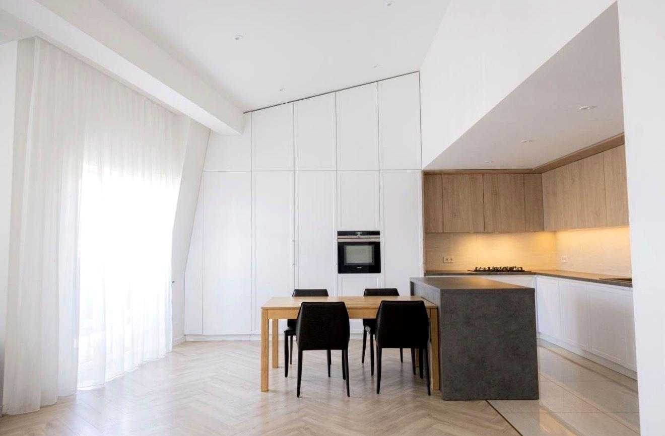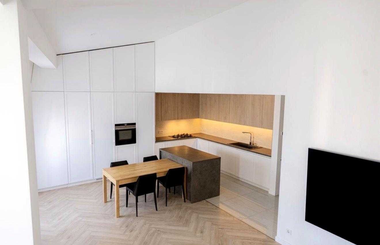 Квартира знаходиться у новому клубному будинку на вул. Сулими, 15. Загальна площа складає 110 м², розташована на 5 поверхів з ліфтом. Перший рівень включає простору кухню-вітальню, спальню, санвузол, гардероб, балкон з BBQ та терасу. На другому рівні - дві кімнати, санвузол та шафа для зберігання. Оснащена дизайнерським ремонтом, меблями преміум-класу, 96" телевізором, холодильником з морозильною камерою, побутовою технікою. Переваги: паркінг, система безпеки, зарядка для електромобіля, індивідуальне опалення.