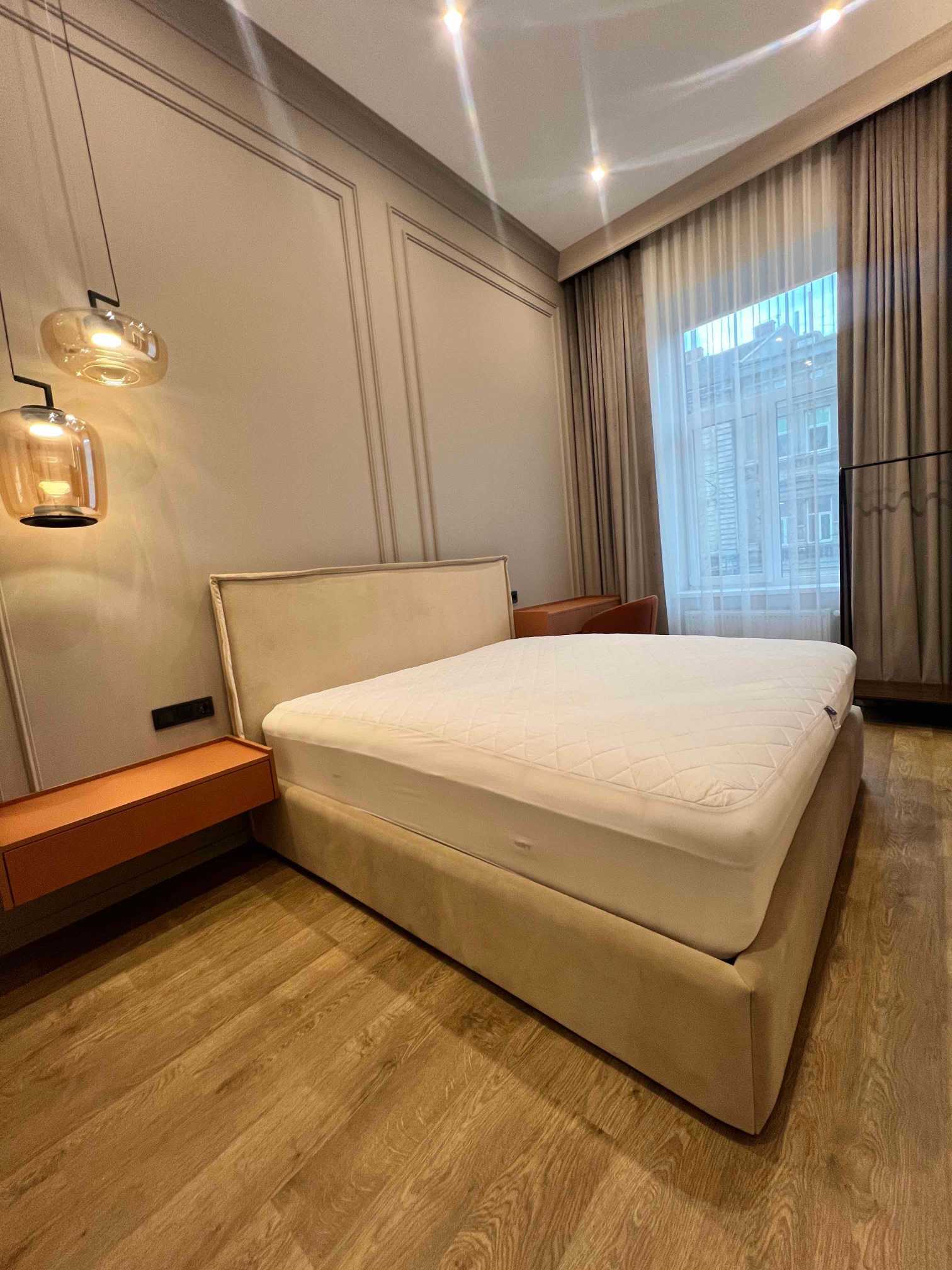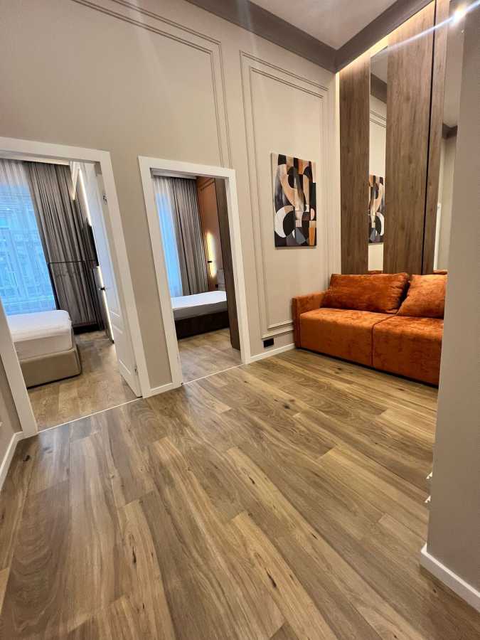 Пропонується сучасна 2-кімнатна квартира в центрі Львова на вулиці Шолом Алейхема. Квартира займає площу 55 м² та розташована на 2-му поверсі 3-поверхового будинку. В квартирі - дві ізольовані спальні, кухня-студія та гардероб. Дизайнерський ремонт, висота стелі 3.75 м, натяжна стеля та якісні підлоги з керамічної плитки й ламінату. Індивідуальне опалення та підігрів підлоги забезпечують комфорт. Санвузол суміжний, є всі необхідні прилади: телевізор, пральна машина, кондиціонер. Безпека подбавша з кодовим замком та броньованими дверима. Внутрішнє озеленення двору.