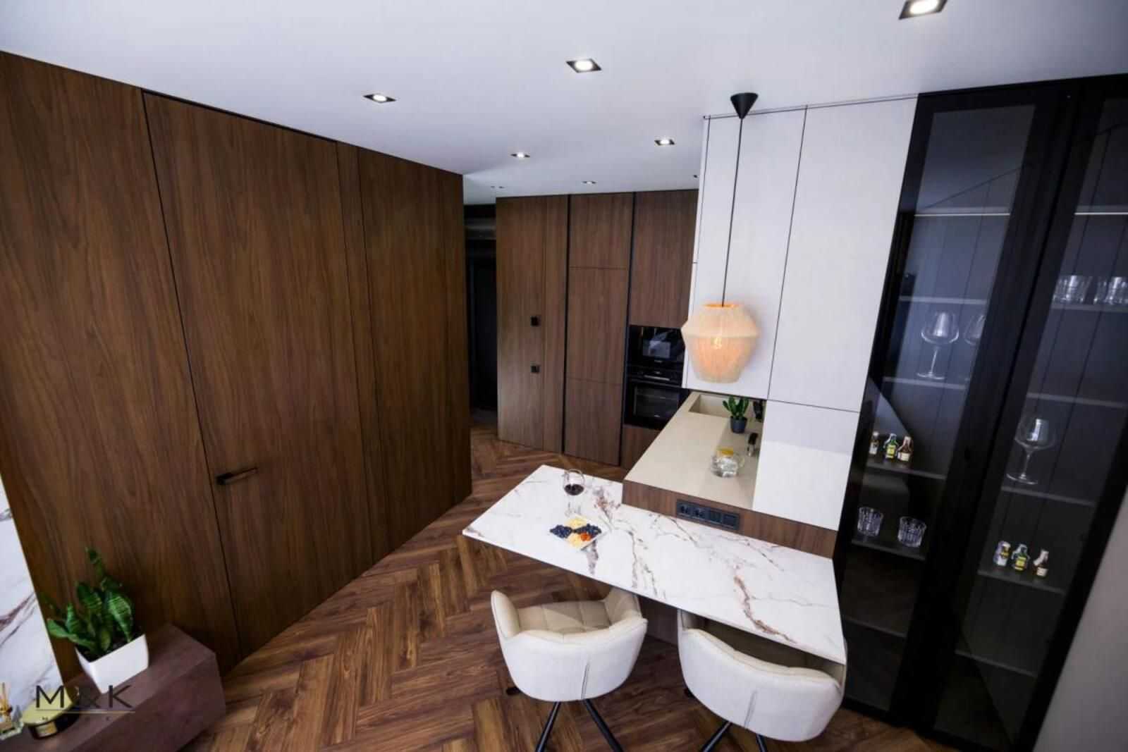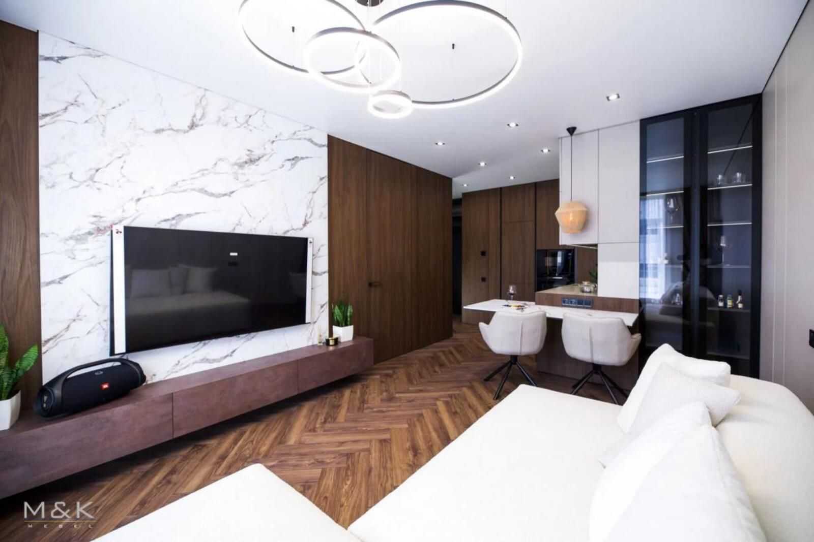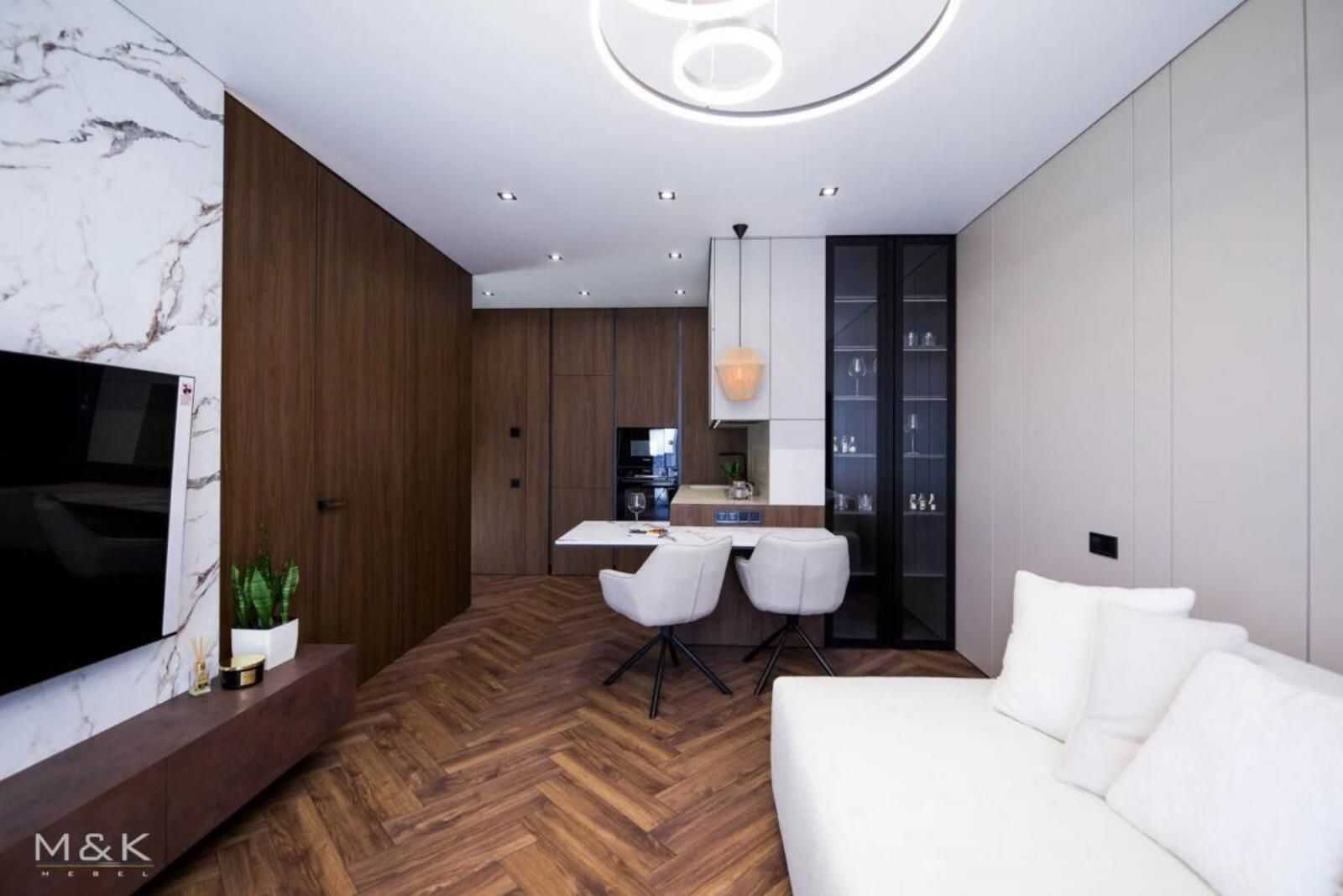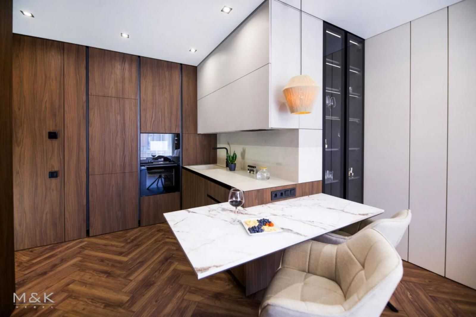 Пропонується однокімнатна квартира в житловому комплексі Грінвуд 2, Брюховичі, загальною площею 45 м.кв. Простора кухня-вітальня площею 21 м.кв. та комфортна спальня 16 м.кв. У квартирі сучасний VIP ремонт та стильні меблі. Реалізовані системи "Розумний дім" з можливістю управління через смартфон. Звукозахисна стіна, підігрів підлоги, сучасна сантехніка від відомих виробників. Вся техніка надійна та якісна, включаючи пристрої Bosch та Samsung. Квартира має низку елегантних деталей інтер'єру.