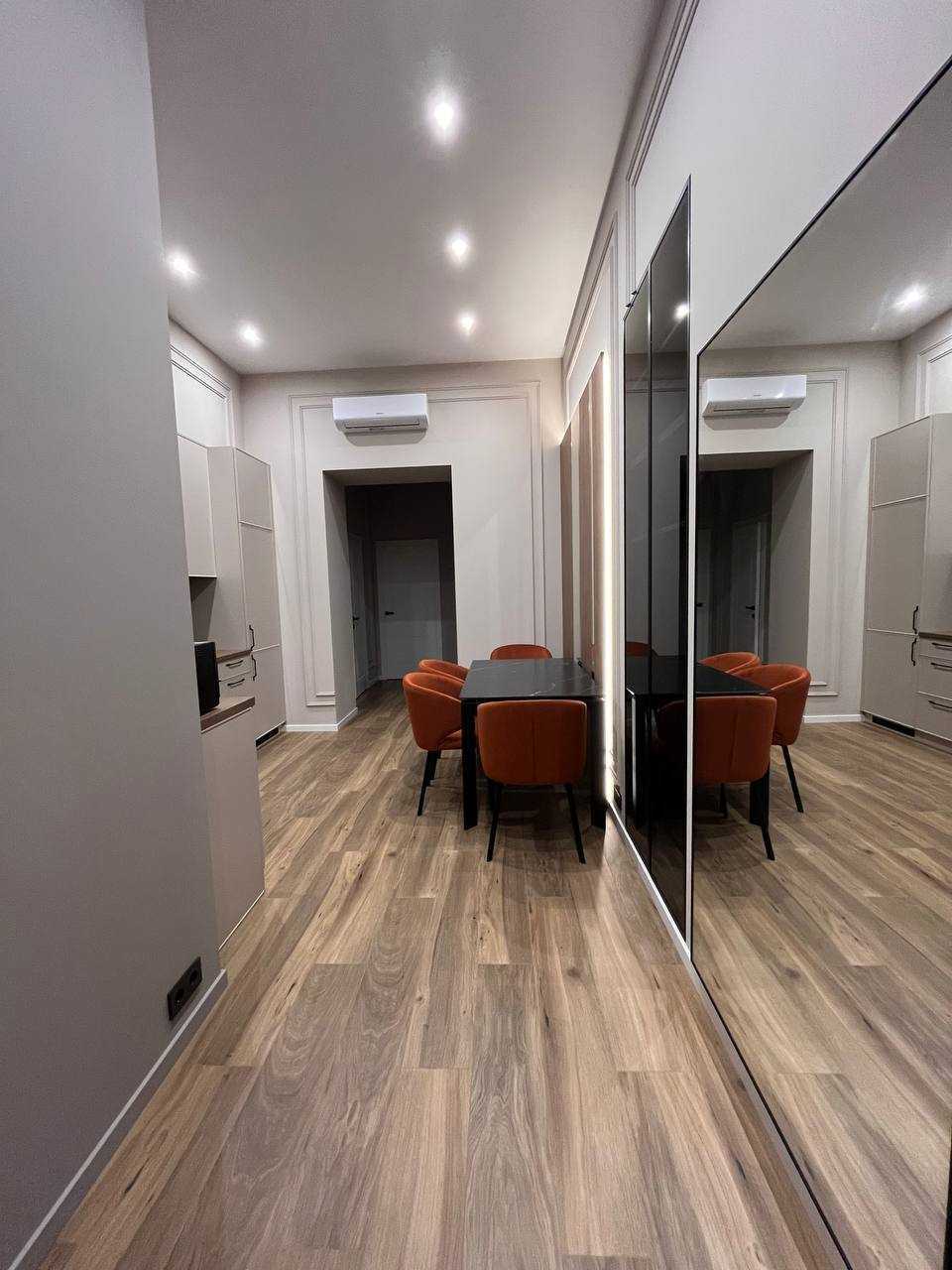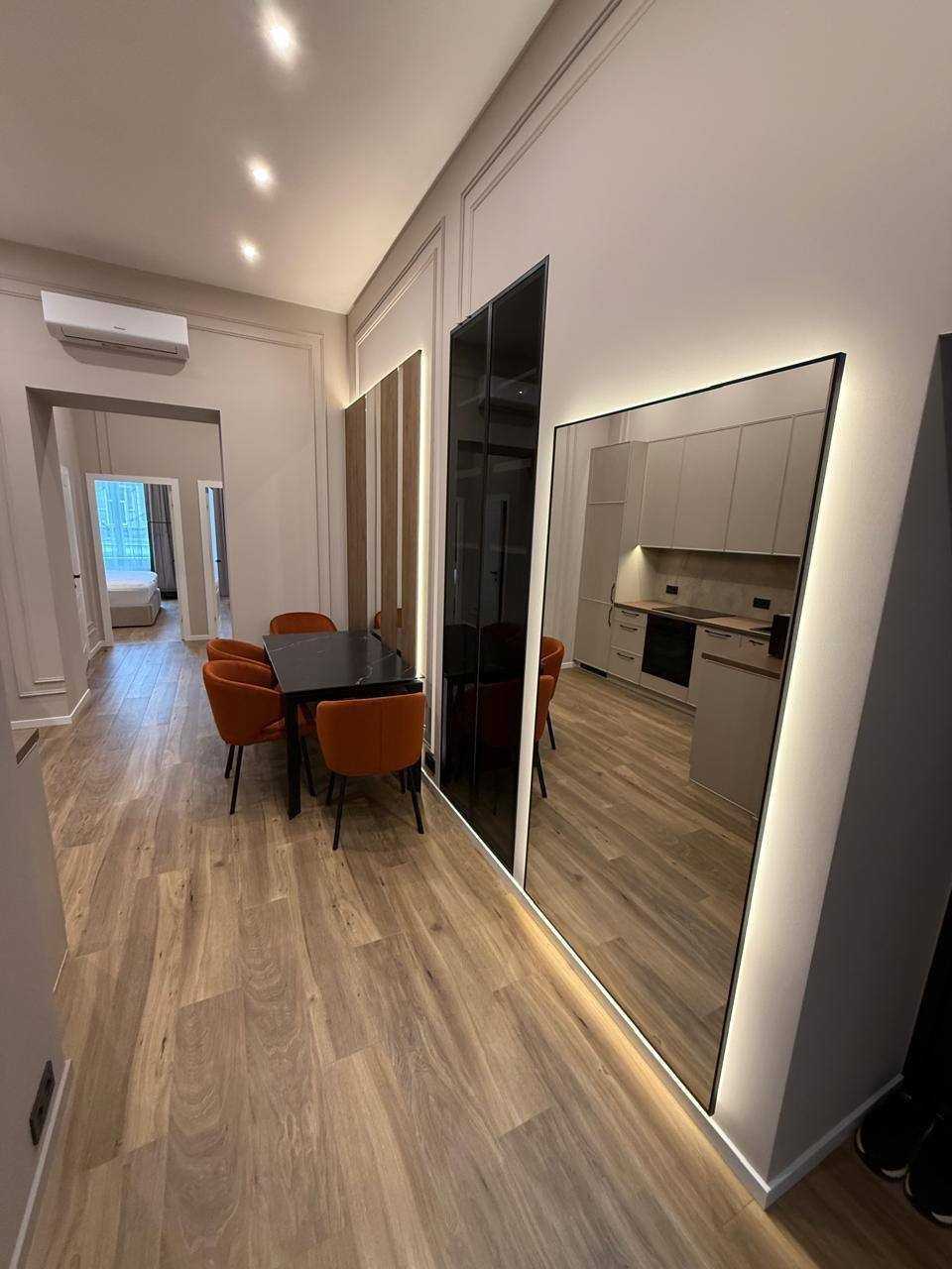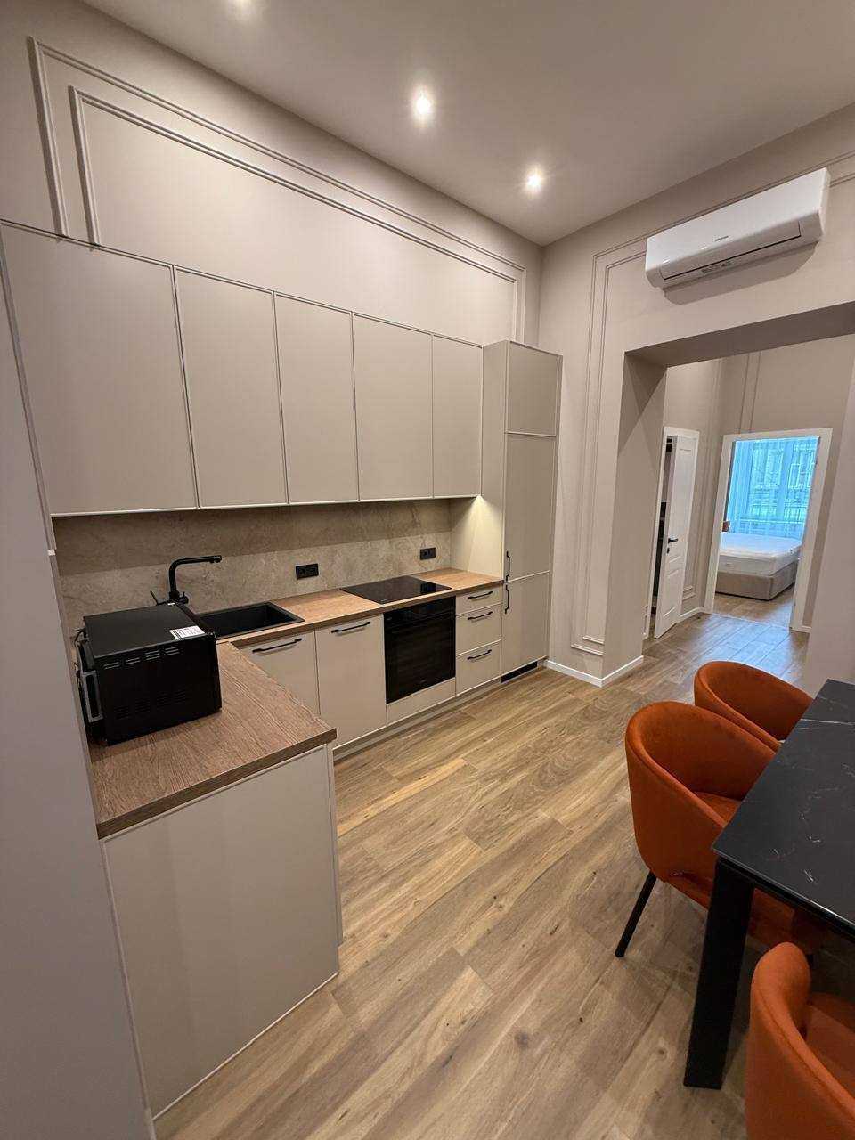 Двокімнатна квартира на вул. Шолом-Алейхема у Львові має площу 55 м² та знаходиться на другому поверсі триповерхового будинку. Квартира пропонує сучасний дизайнерський ремонт, включає дві ізольовані спальні, кухню, гардеробну та санвузол. Оснащена автономним опаленням та підігрівом підлоги. У комплектації є меблі й побутова техніка, зокрема кондиціонер та посудомийна машина. Високі стелі, замінені вікна. Розташування на тихій вулиці з розвиненою інфраструктурою, всього 5 хвилин пішки до Оперного Театру.