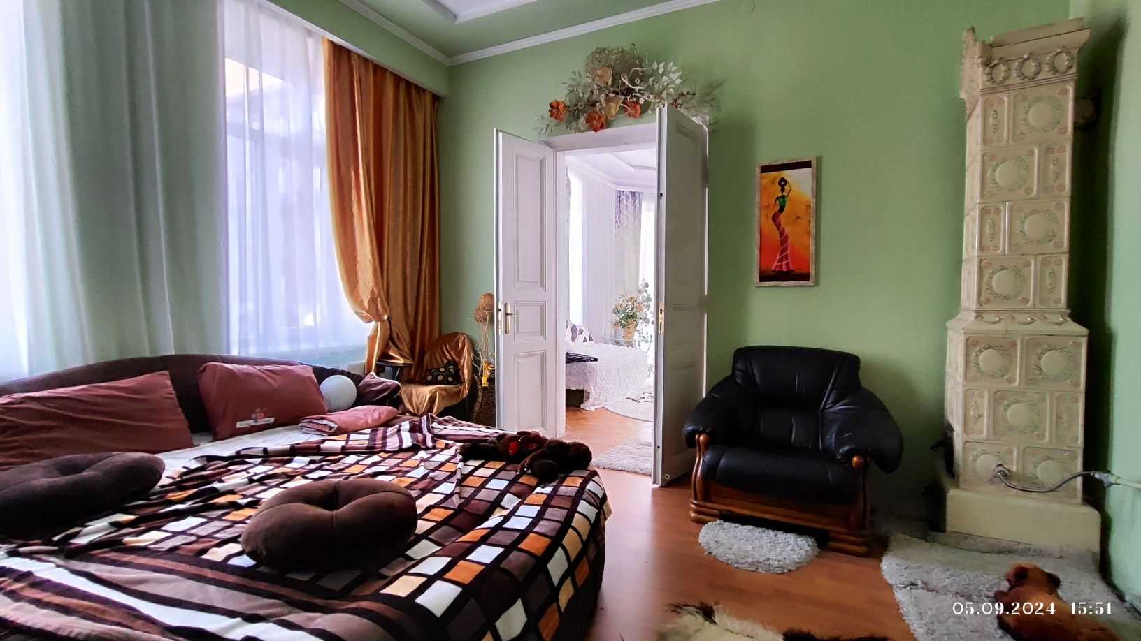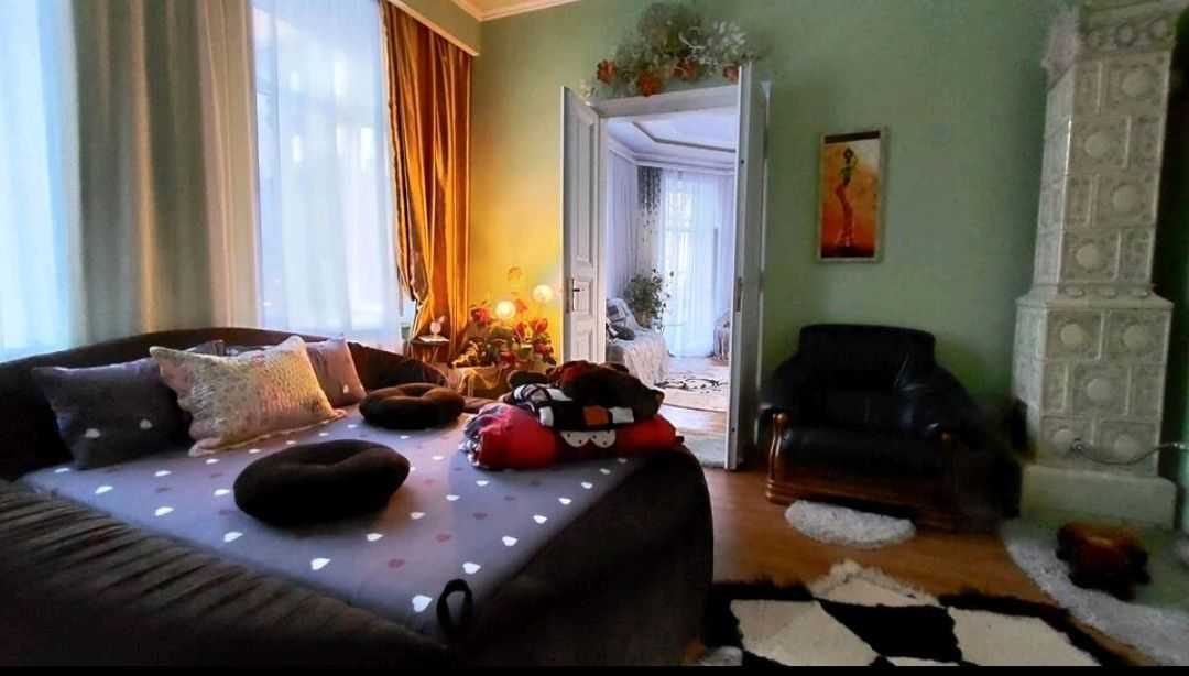 Пропонується квартира в центрі Львова, з великими кімнатами та золотим старовинним кованим балконом. Всі вікна виходять на фасад та мають південно-східну орієнтацію. Інтер'єр виконаний у австрійському стилі, з оригінальними камінами під захистом ЮНЕСКО. Окреме газове опалення, квартира розташована на другому поверсі триповерхового будинку. Обладнана меблями, чиста та затишна.