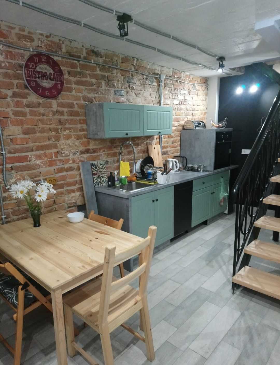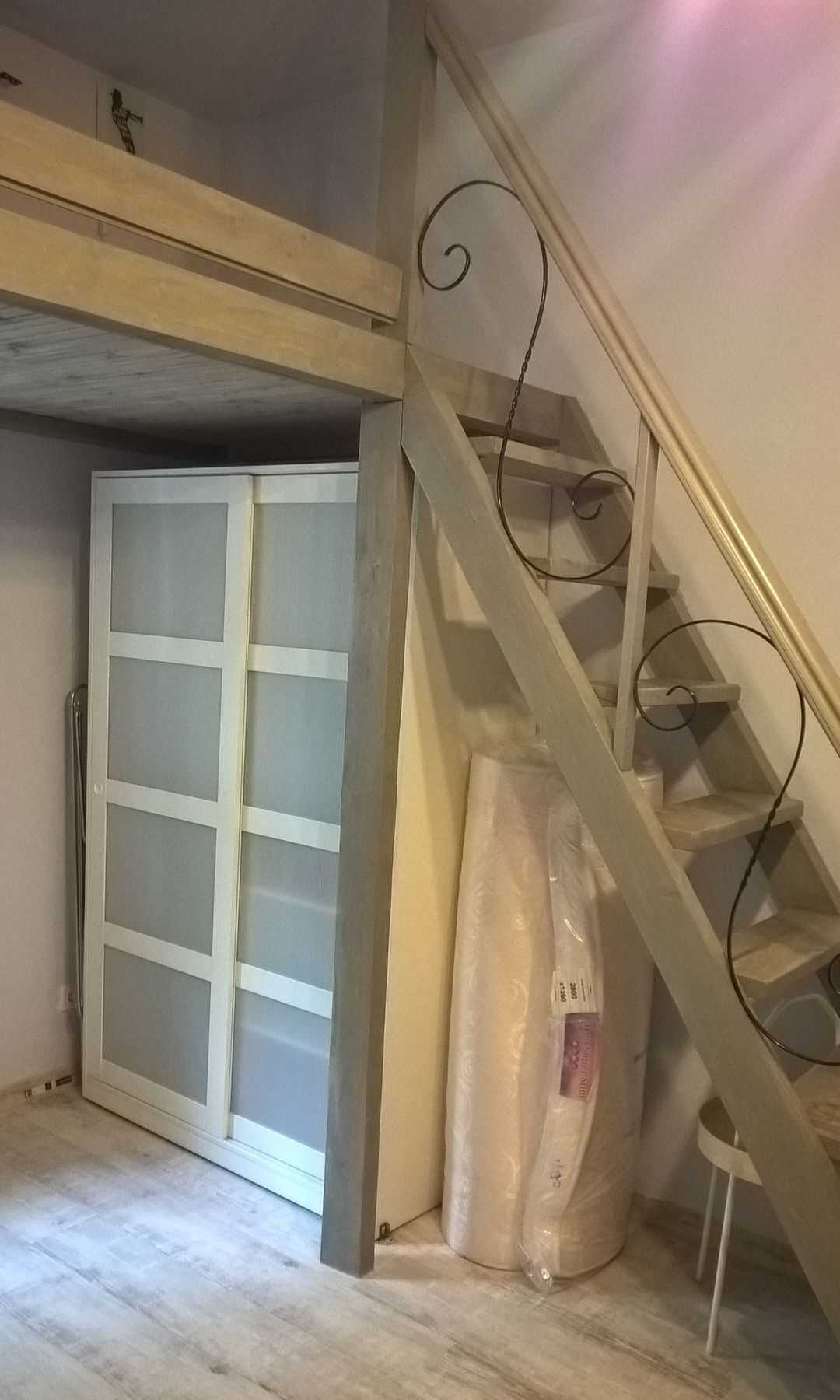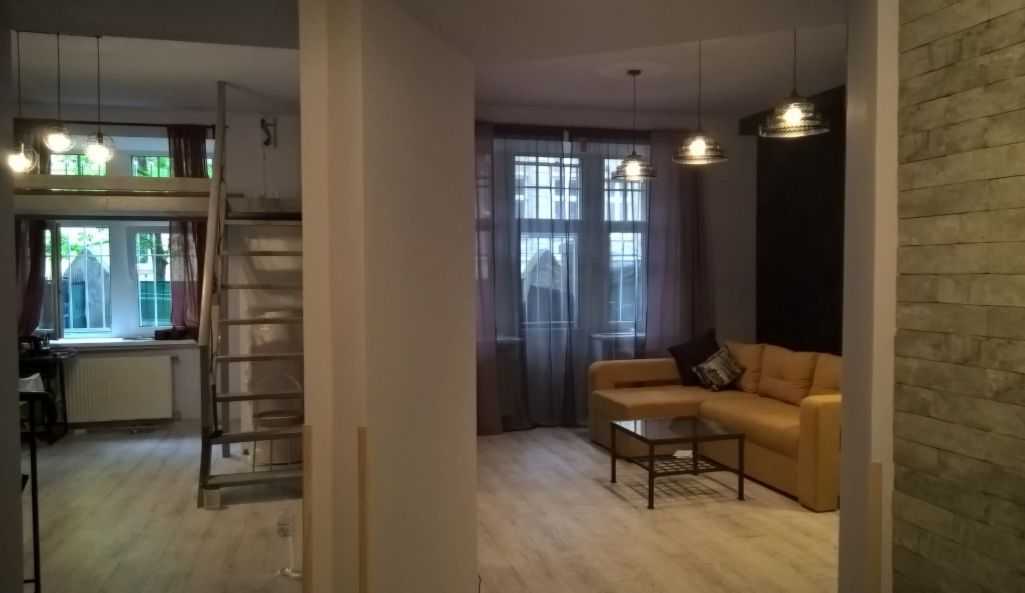 Пропонується 2-рівнева квартира в австрійському будинку. Перший рівень складається з коридору площею 8,7 м², ванни з туалетом площею 6,4 м², кімнати площею 19,6 м² та кімнати з антресоллю площею 14 м². Сходи площею 2,6 м² ведуть до кухні площею 17 м², яка може слугувати як сховище. Висота верхнього рівня - 3,10 м, кухні - 2,8 м. З кімнати є вихід на прибудинкову ділянку.
