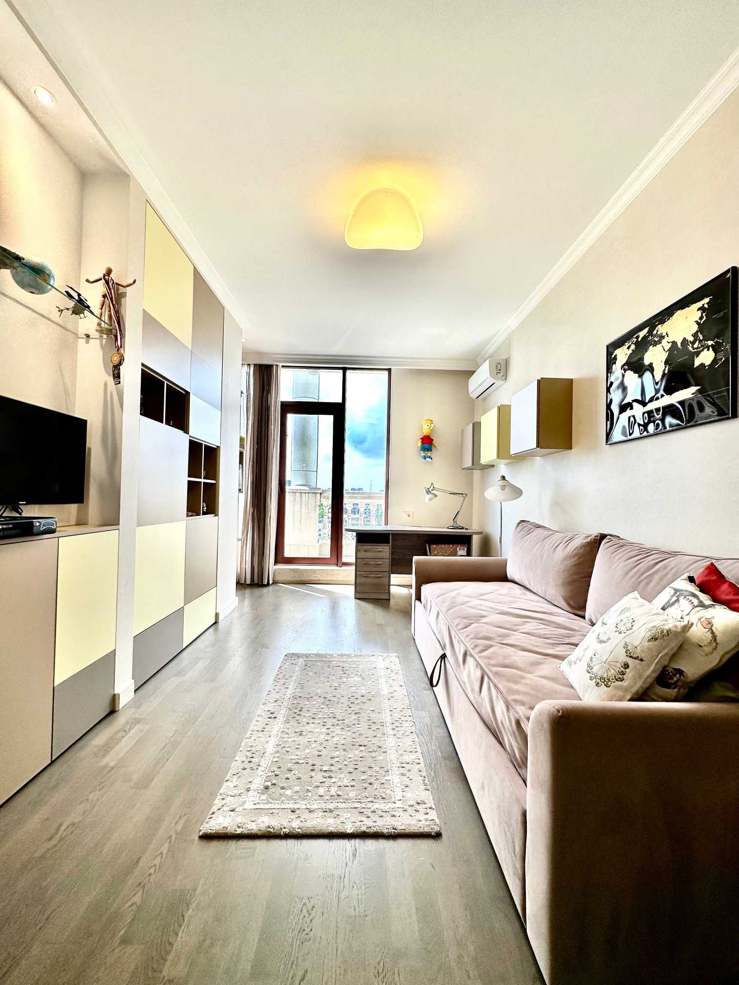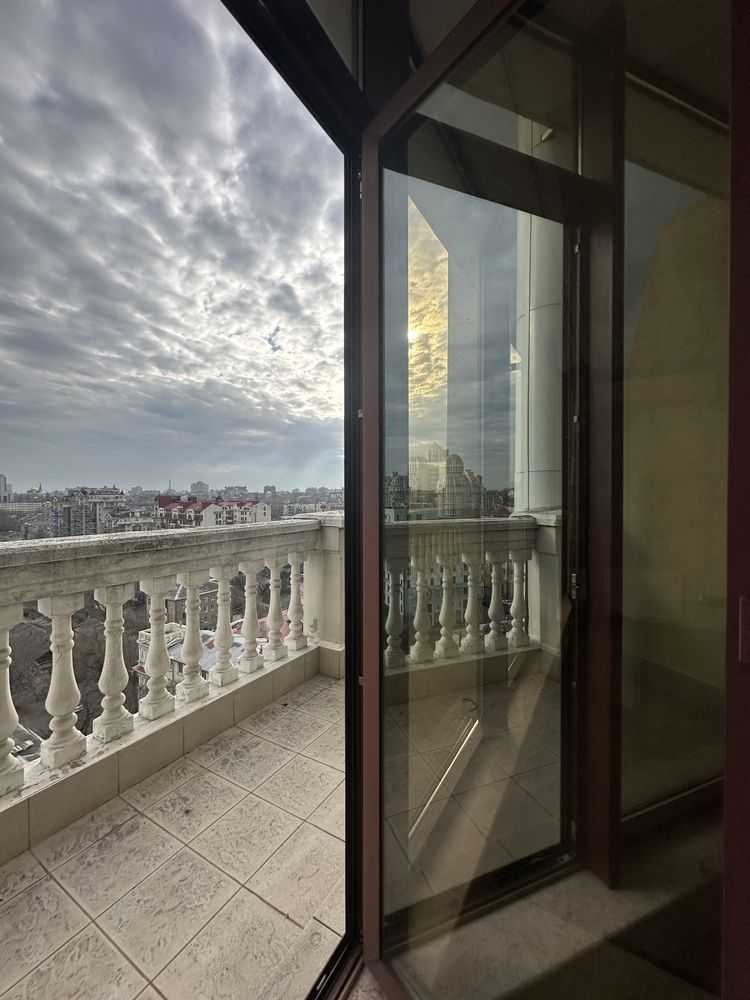Представлена трьохкімнатна квартира в ЖК "Гефест" на Грецькій, 1-А, розташована на 13-му поверсі з видом на море та місто. Квартира має двостороннє планування та виконаний якісний ремонт. Простора кухня-студія з виходом на террасу, основна спальня з гардеробною та власним санузлом, дитяча спальня також з виходом на террасу. Додатковий санузел обладнаний душовою кабіною. Наявні пральня, підземний паркінг та кладова у парадній.