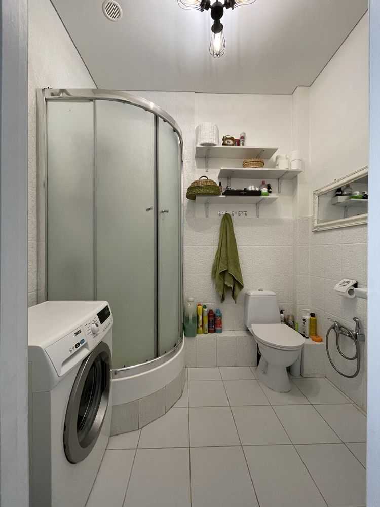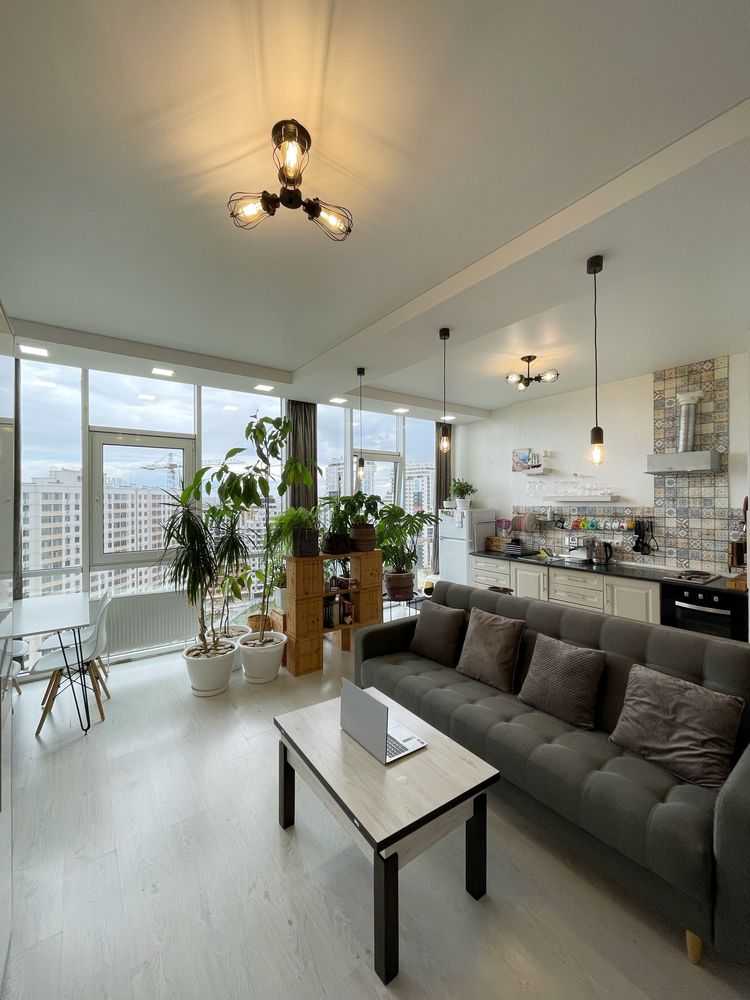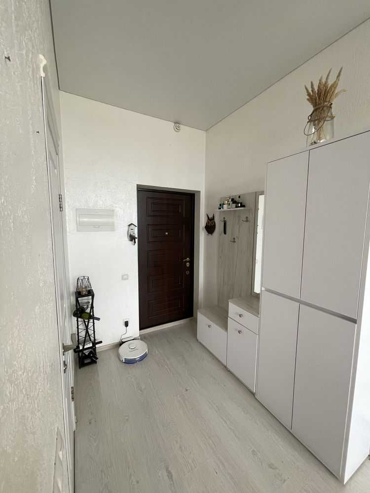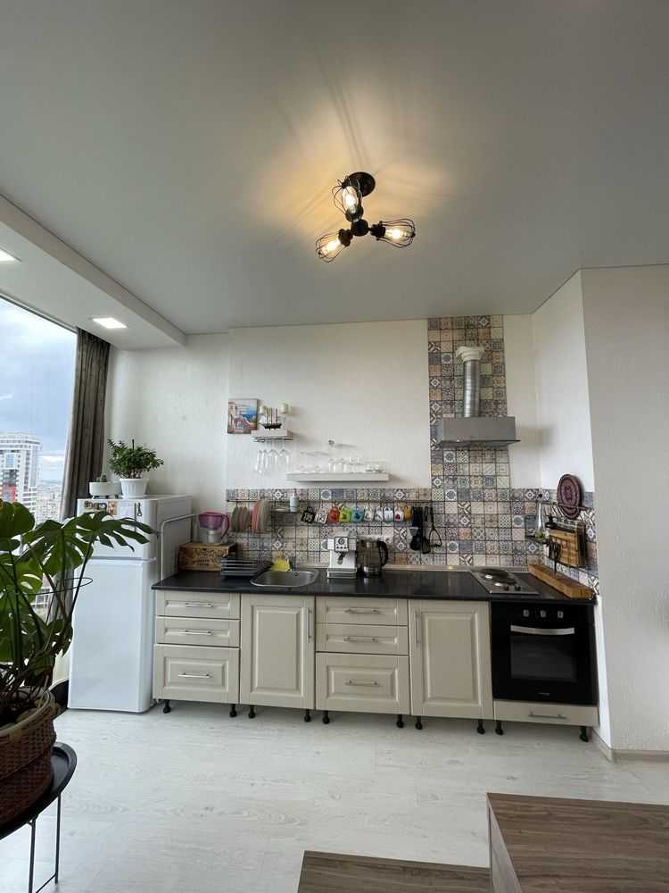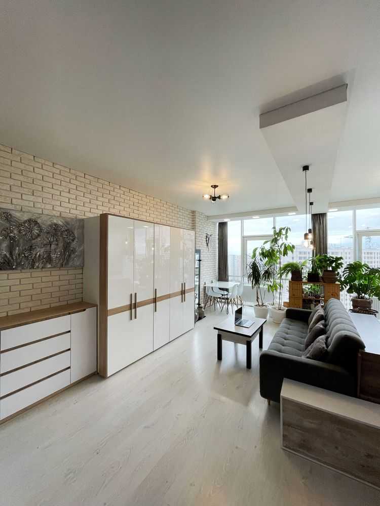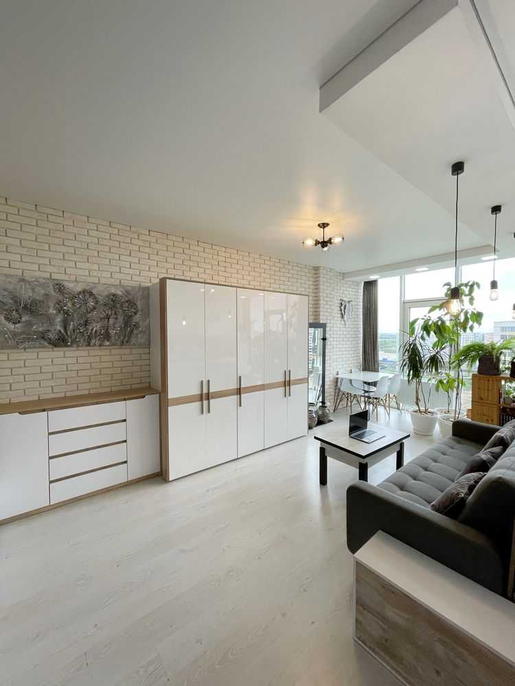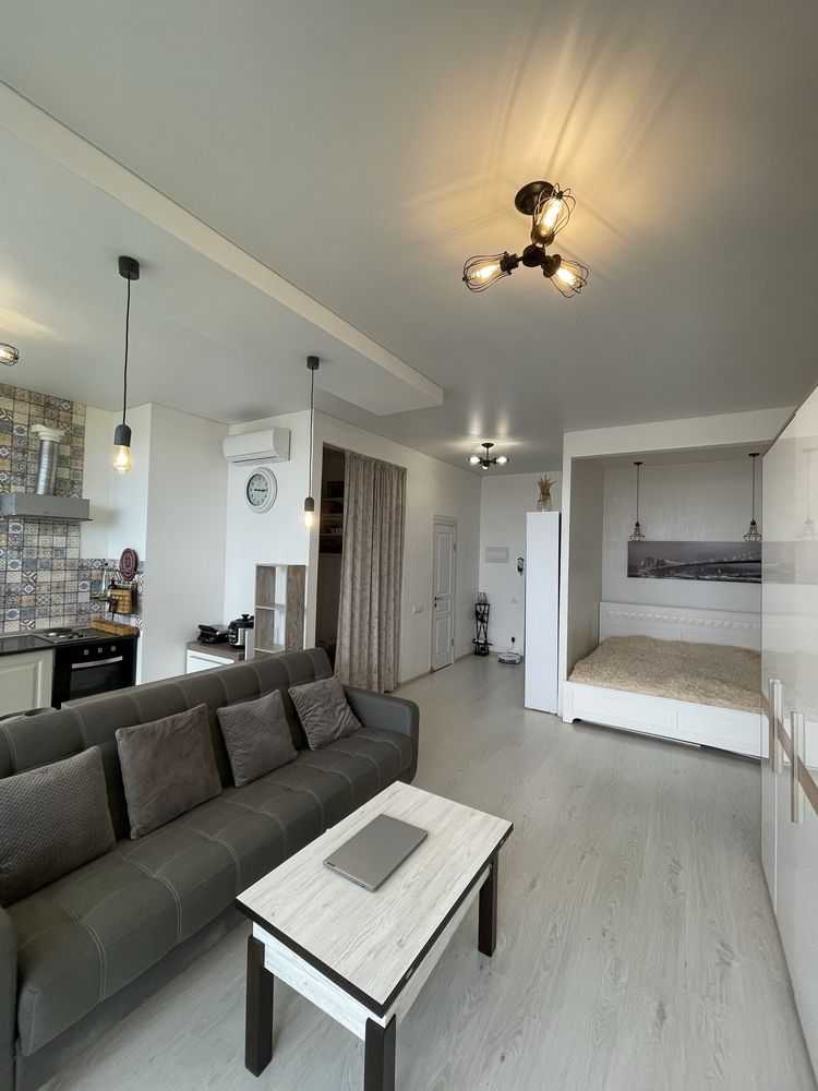 Квартира-студія в сучасних світлих тонах на 17-му поверсі. Панорамні вікна з видом на північно-західну сторону забезпечують комфорт влітку. У житловому комплексі "Жемчужина" є охорона та відеоспостереження. Власна котельня і генератор створюють додатковий комфорт. Поряд розташована вся необхідна інфраструктура: нові відділення пошти, магазини та кафе.