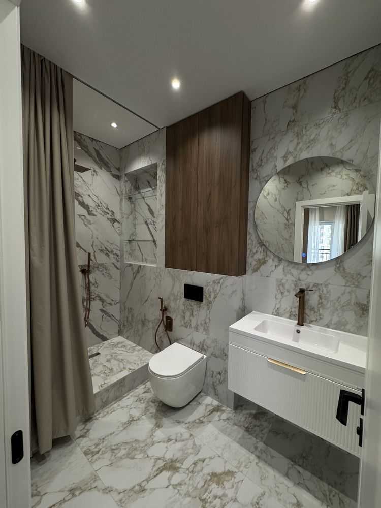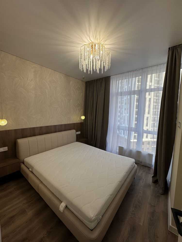 В Одесі, в комплексі "Жемчужина" на 7-му поверсі, розташована сучасна квартира площею 42,5 м² з чудовим видом на іподром. Простора кухня-студія, спальня, санвузол, а також два гардеробні забезпечують комфортне проживання. Квартира повністю укомплектована вбудованою технікою BEKO, включаючи духову шафу, мікрохвильову піч і холодильник. Є також пральна машина з функцією сушки та сантехніка прихованого монтажу Volle. Стильна дерев'яна меблі від Frankof додає затишку.