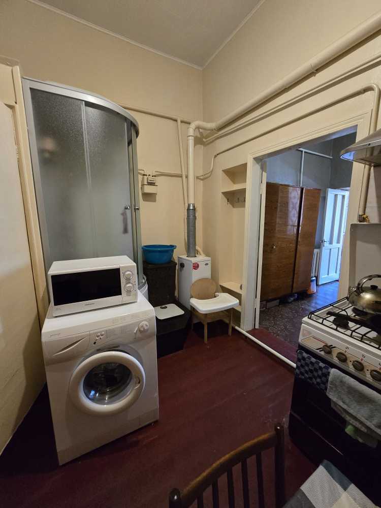 Двокімнатна квартира розташована на вулиці Середня, у районі Молдаванка. Загальна площа складає 38,1 м². Квартира на 2-му поверсі, має прохідну кімнату з другим світлом. Високі стелі висотою 3,45 м створюють відчуття простору. Є два вікна, які виходять на фасад. Опалення проводиться через автономний газовий котел. Закритий тамбур належить тільки цій квартирі.