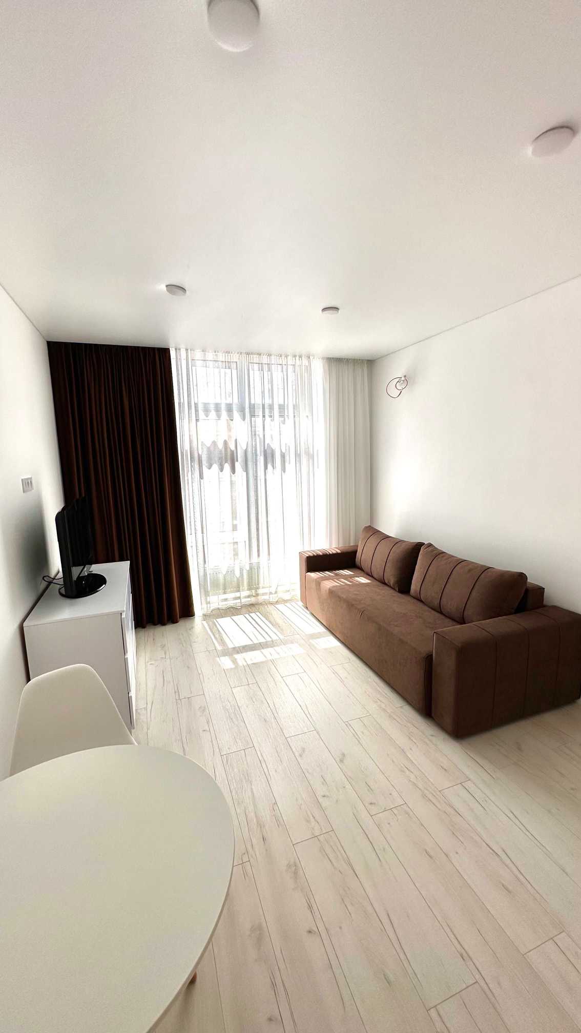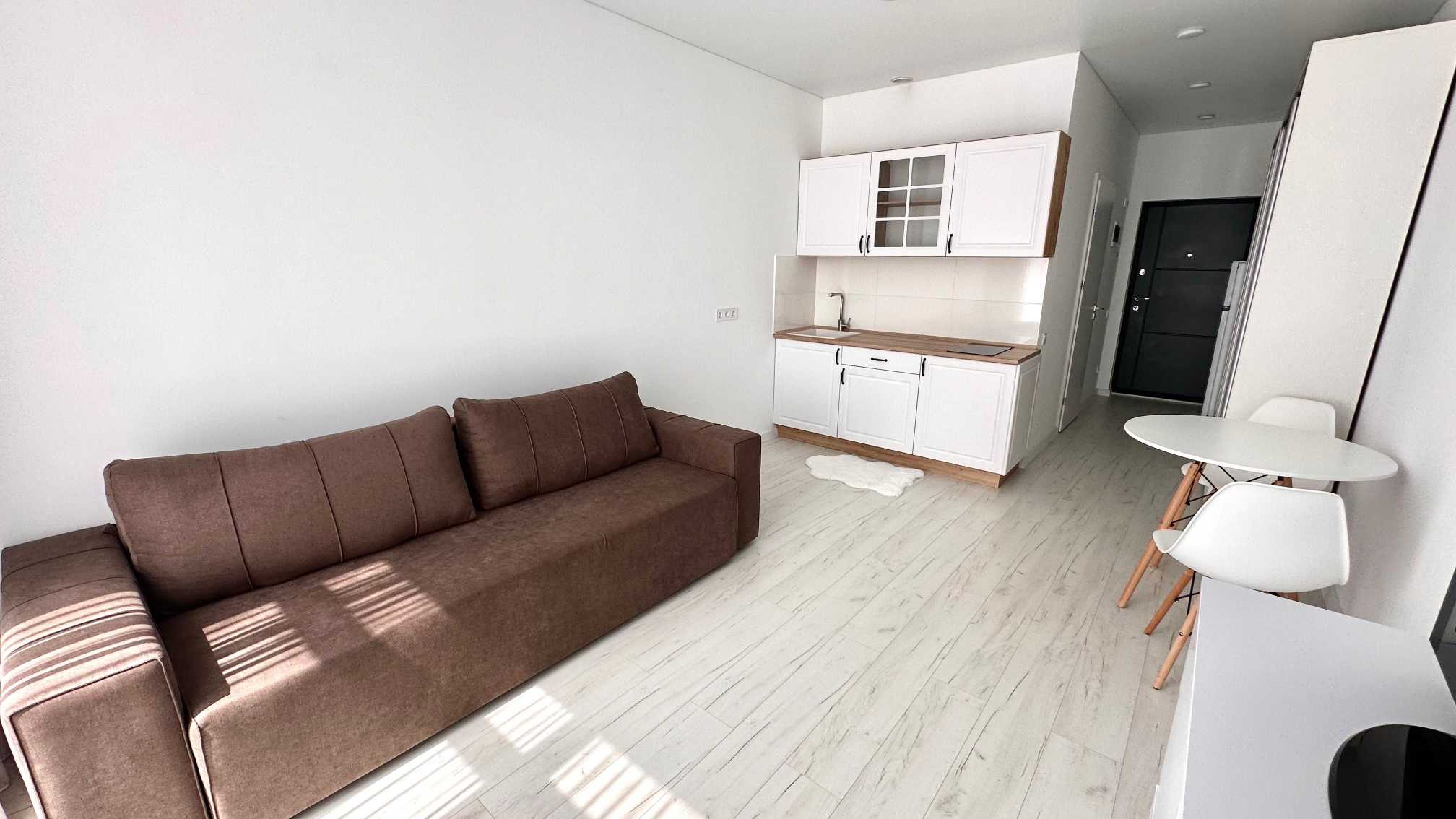 Стильна смарт квартира розміщена на 4-му поверсі нового ЖК «Пространство на Радостной». Площа становить 24,3 м2. Квартира світла та нова, повністю обставлена сучасною меблею та технікою. Район спокійний, з відповідною інфраструктурою та зручною транспортною розв'язкою.